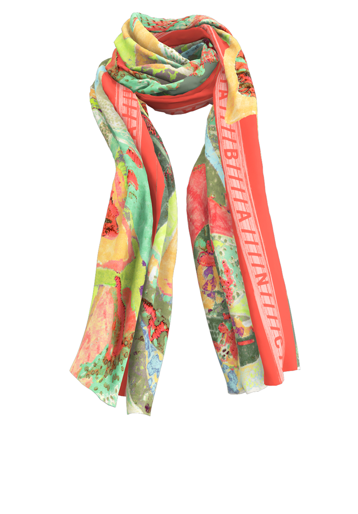 * Modeschal in Trendfarben und angesagtem Allover-Dessin * Angenehm weiche Qualität * Cooles Accessoires für den Sommer * Rechteckige Form * Größe ca. 70 x 180 cm