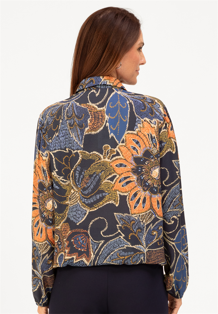 * Tolle Druckbluse mit Hemdkragen und V-Ausschnitt * 100% Viskose für ein angenehmes Tragegefühl * Langarm mit Gummibundabschluss * Lockere Passform, elastischer Saumabschluss * Bei Gr. 38: Länge ca. 62cm, ab Gr. 40 je Gr. ca. 1cm länger