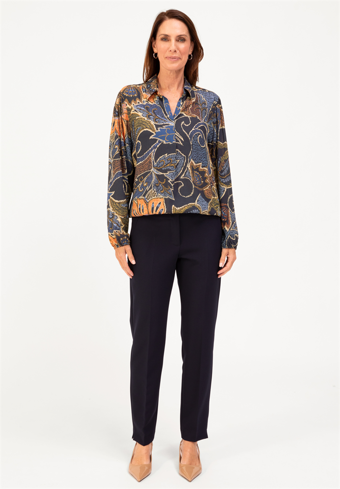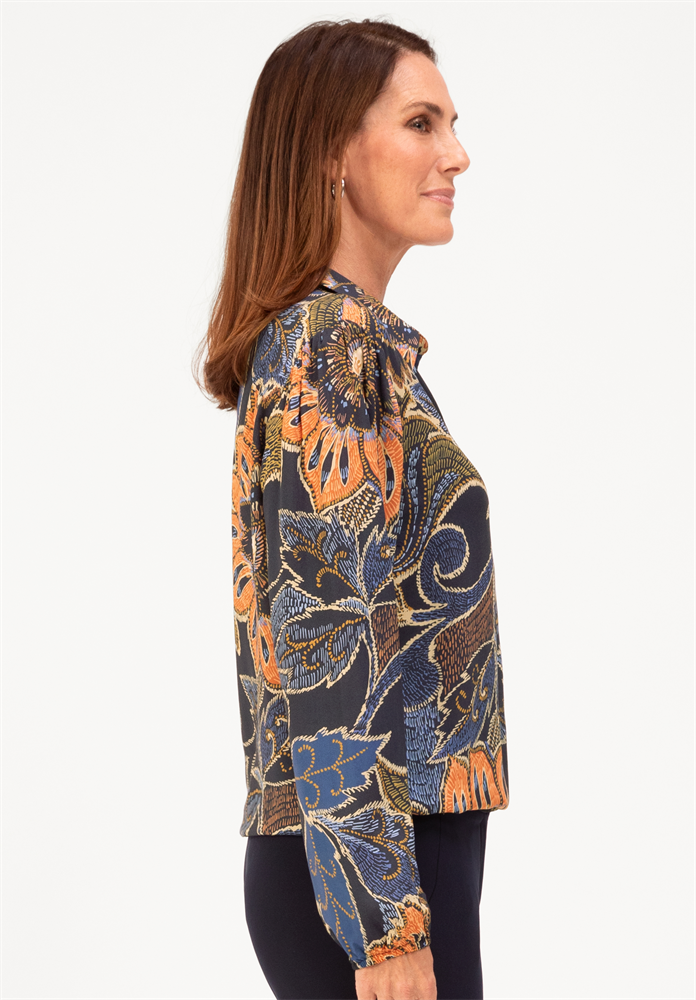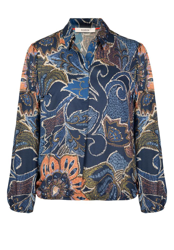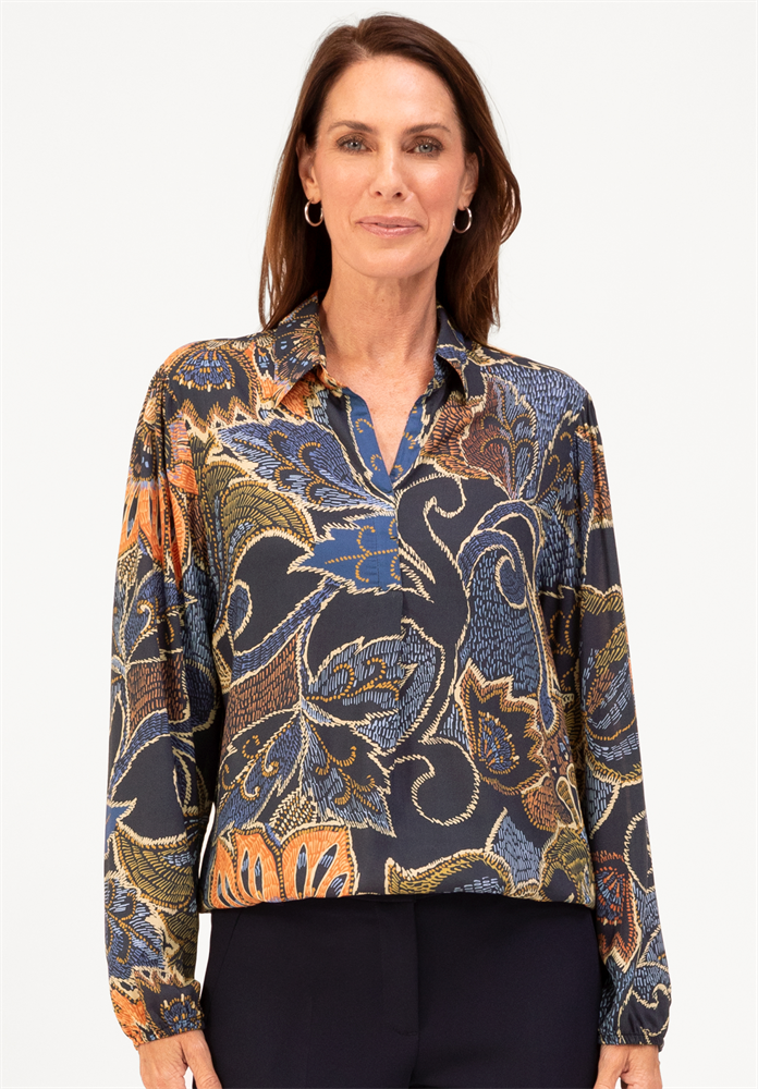 Feminine Leichtigkeit für jeden Anlass, unsere Druckbluse Adina ist ein wahres Allround-Talent! Das moderne grafische Dessin in Trendfarben verleiht ihr einen modischen Look, während die Qualität aus 100% Viskose für ein angenehmes Tragegefühl sorgt. Dank lockerer Passform, elastischem Gummibund am Saum und dem Langarm sowie dem V-Ausschnitt mit Hemdkragen bietet Adina hohen Komfort. Ob elegant zur Hose oder entspannt zur Jeans, diese Bluse ist ein echtes Must-have für Ihre Garderobe.