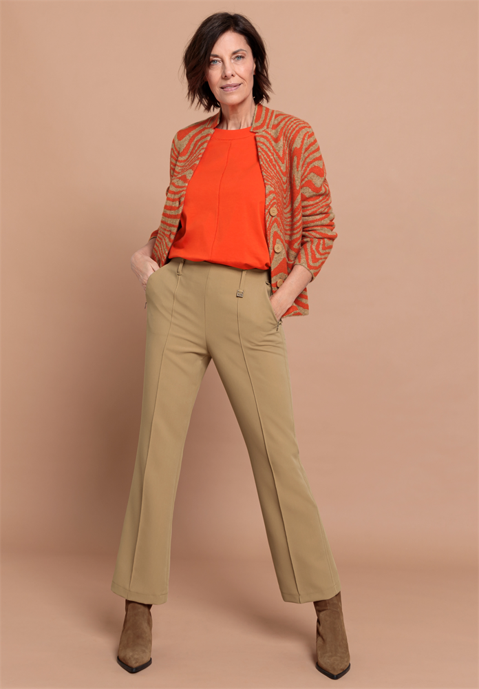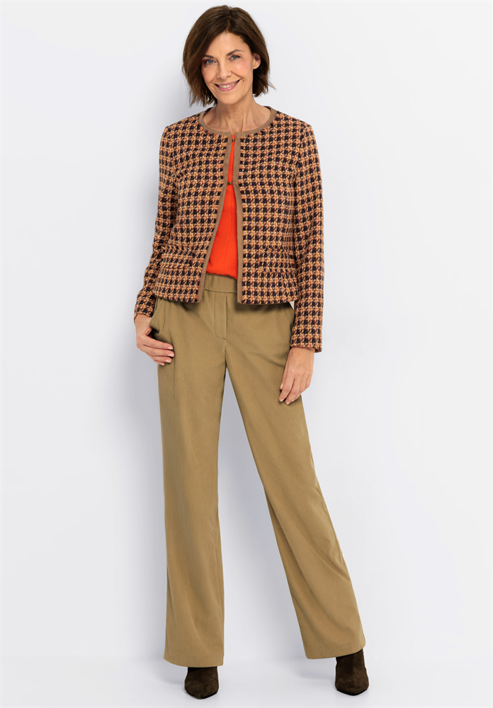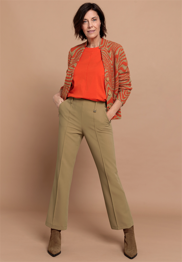 * Schönes Rundhalsshirt mit Blende am Ausschnitt * Weiche Baumwollqualität mit Elasthan, Formstabil * Mit Langarm * Gerader Schnitt, schmale Passform * Bei Gr. 38: Länge ca. 64 cm