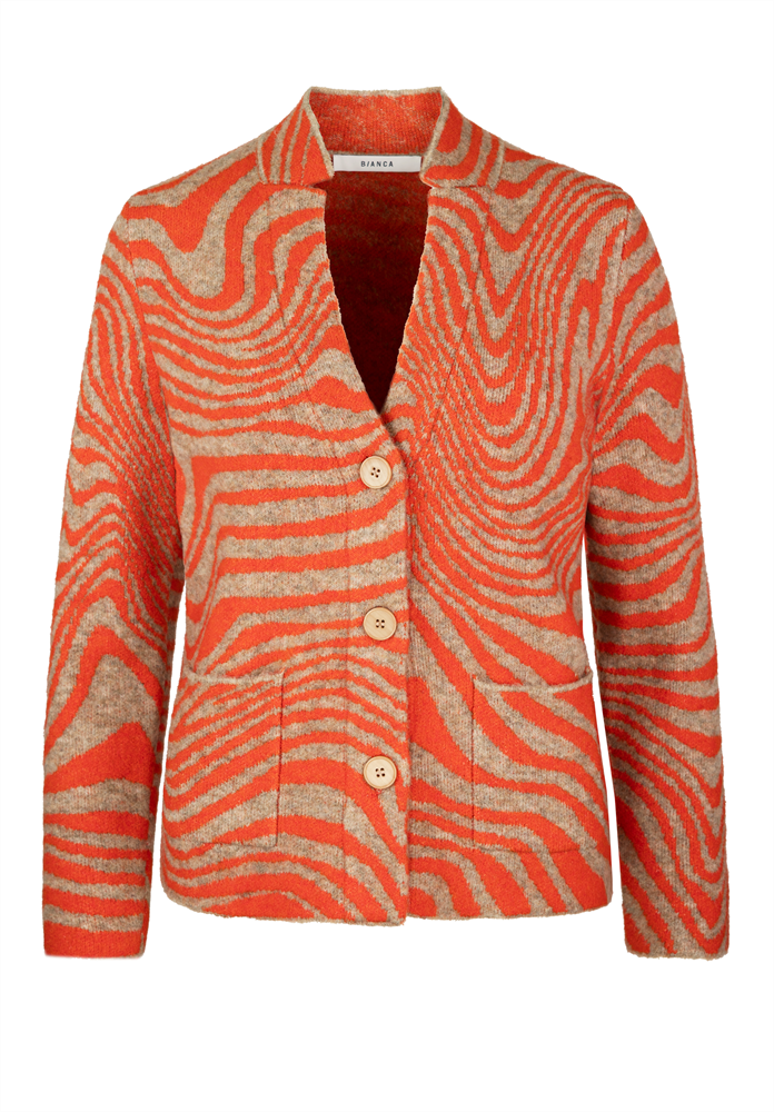 Perfekt zum Überziehen! Unsere neue Strickjacke Kosmos überzeugt mit ihrer kuscheligen Strick-Optik in moderner Animal-Print Optik in Trendfarben. Der hochwertige Materialmix mit Wolle fühlt sich sehr soft an und trägt sich angenehm auf der Haut. Der moderne Ausschnitt mit dem dezent anliegenden Stehkragen, dem 3-Knopf-Verschluss, dem Langarm und den aufgesetzten Taschen vorne runden den lässigen Look ab. Damit ist Kosmos der perfekte Begleiter um viele Outfits zu komplettieren, style sie sowohl zu femininen als auch zu lässigen Outfits!