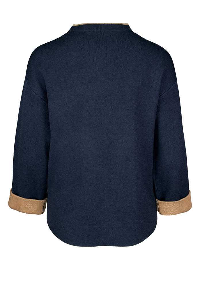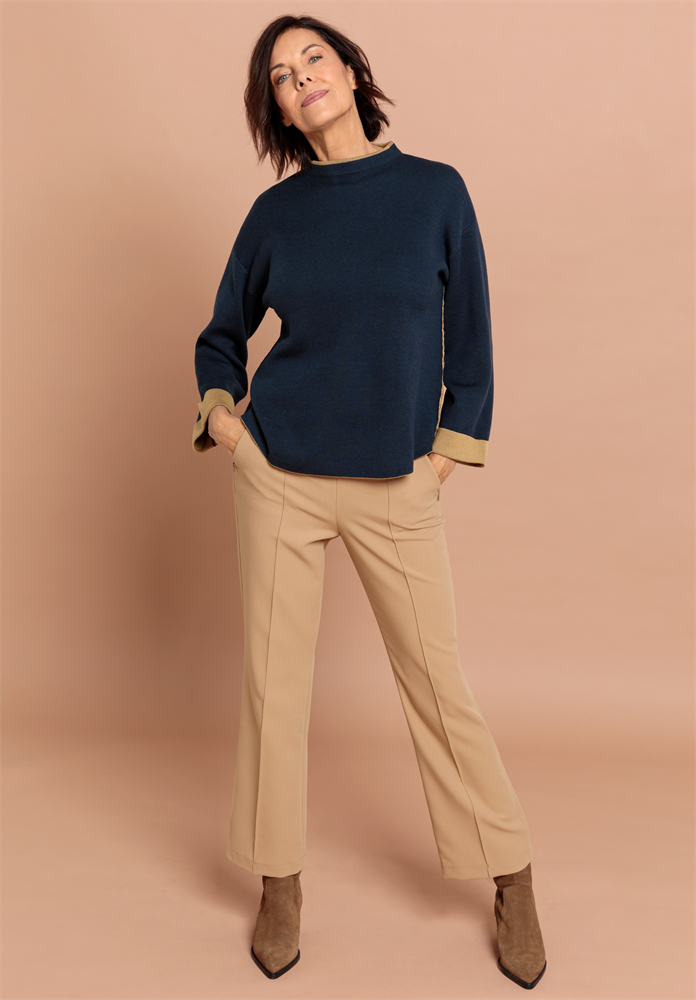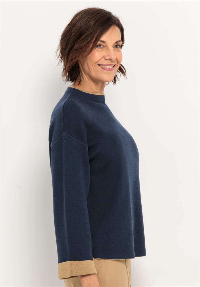 * Angesagter Strickpullover mit dezenten Kontrastdetails * Hochwertiger Materialmix mit kleinem Wollanteil * Etwas höher geschnittener Rundhalsausschnitt * Gerade, lockere Passform * Bei Gr. 38: Länge ca. 62cm