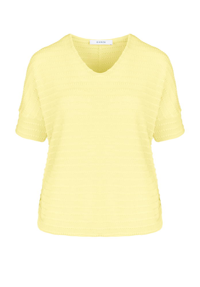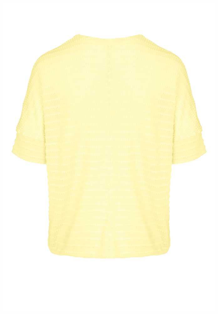 * Modernes Kurzarmshirt mit V-Ausschnitt * Hochwertige Viskose mit Elasthan * Leichte Feinstrickware mit Struktur * Lockere Passform, Gummizug am Saum * Bei Gr. 38: Länge ca. 64 cm