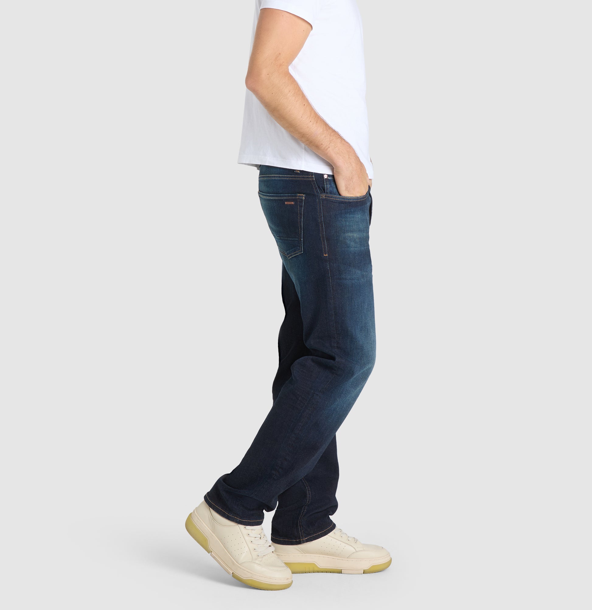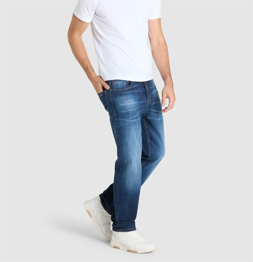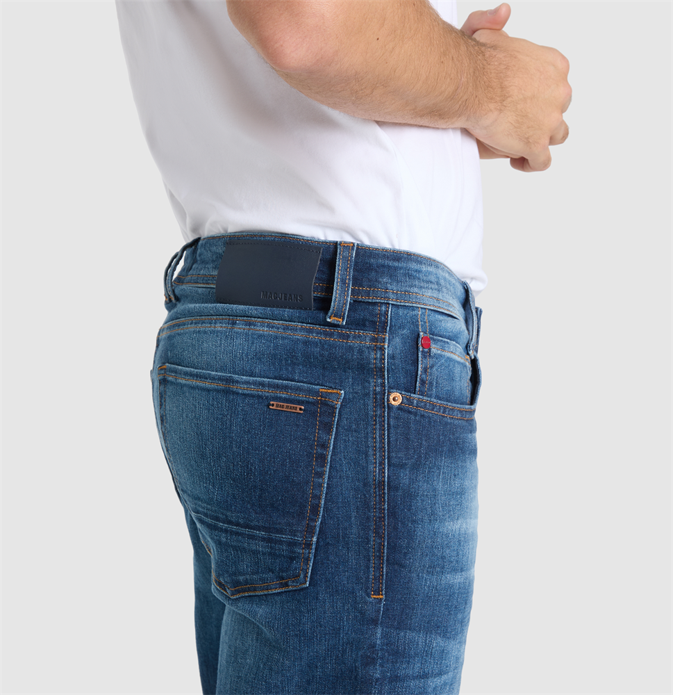 Comfort Fit, gerades, bequemes Bein, schlanke Silhouette, angenehme Leibhöhe, Five Pocket, Vintage Denim, Comfort Stretch Denim, hochwertige, sehr elastische Denim-Qualität, authentische, moderne Optik, angenehmer Griff, lässiger Vintage Look, hervorragende Passform, hoher Tragekomfort, Das Model ist 1,85m groß und trägt die MAC Bundweite 33 und Länge 32, Fußweite bei Größe 33: 42cm