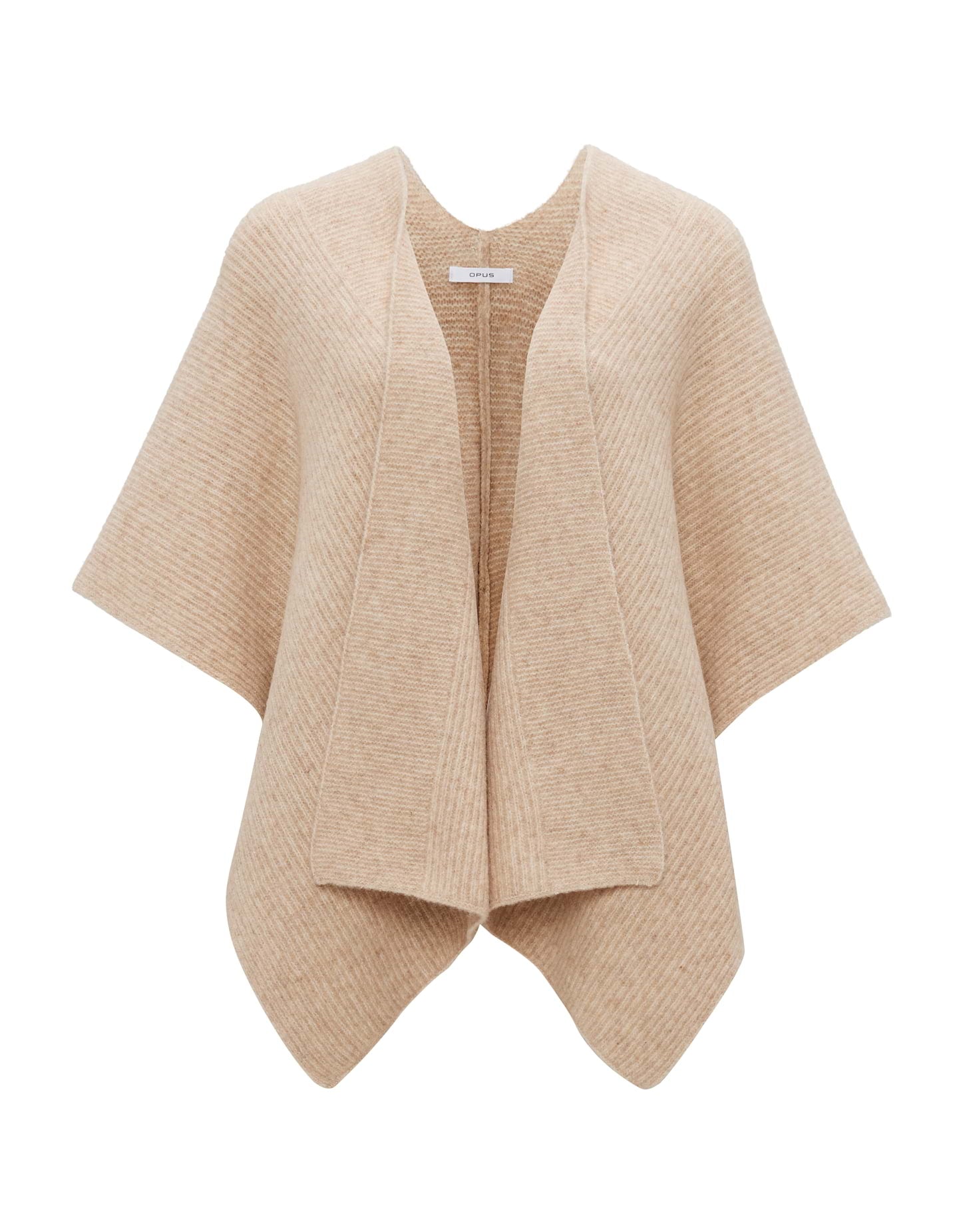 one size, überschnittener Halbarm, Schalkragen, hintere Länge ca. 70 cm, Model Größe 178 cm ? trägt eine Einheitsgröße, Strick, unregelmäßige Rippstruktur, weicher Griff, gebürstete Oberfläche, offene Front
