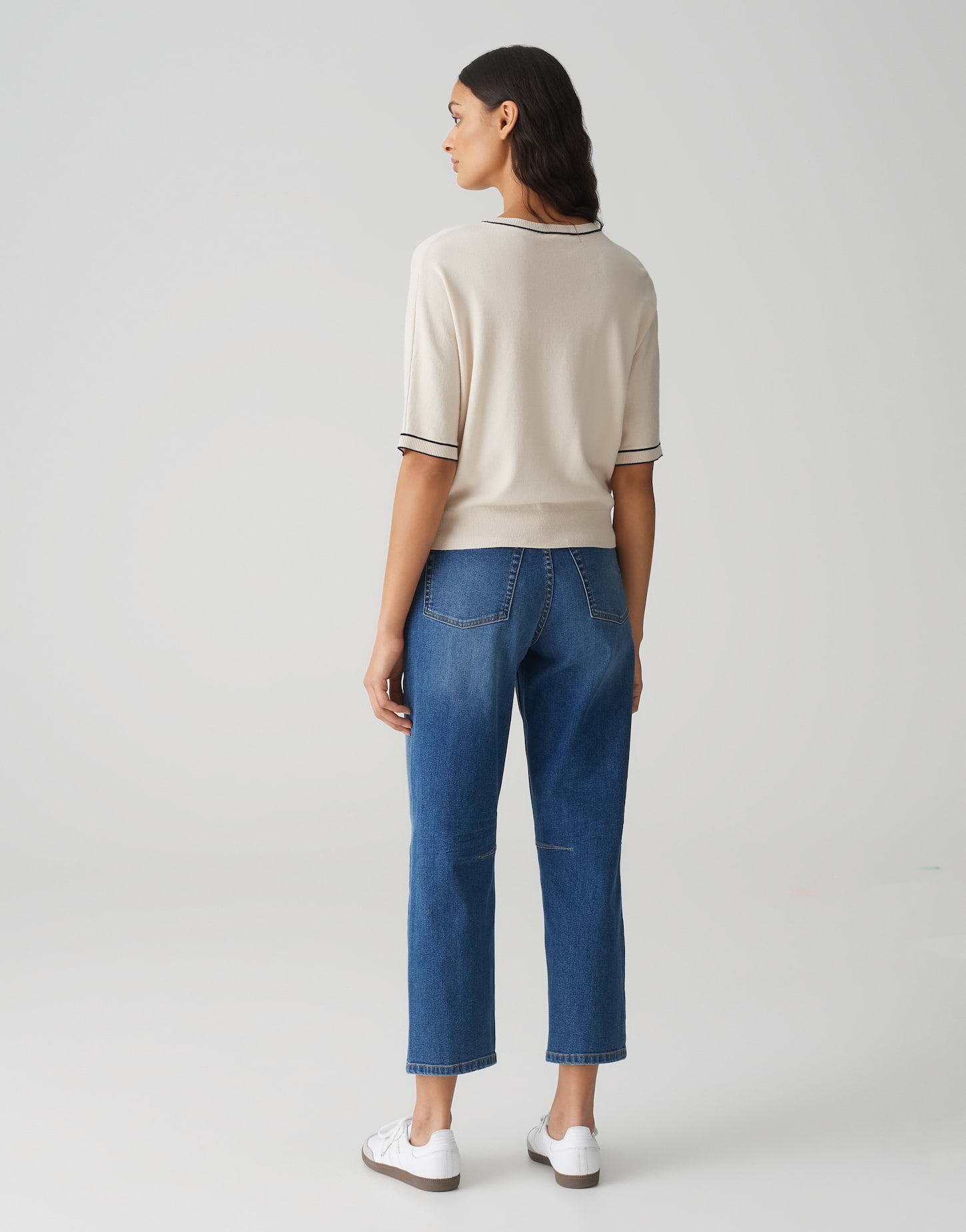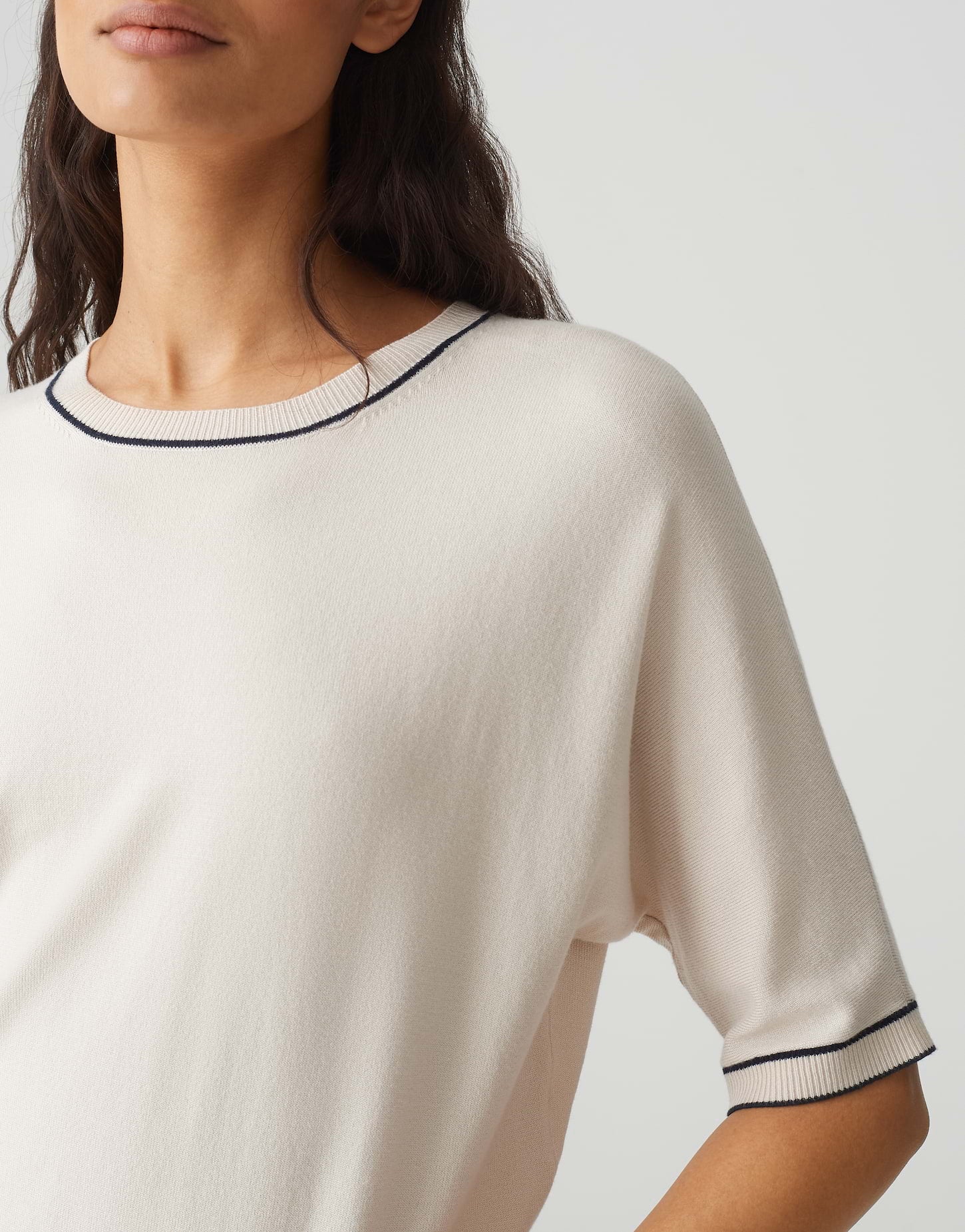 lockere Passform, O-Form, leicht verkürzt geschnitten, kurzer Fledermausärmel, Rundhalsausschnitt, Rückenlänge ca. 54 cm bei Größe 36, Model Größe 178 cm ? trägt Größe 36, Feinstrick, weicher Griff, gerippter Saum, kontrastreiche Nähte