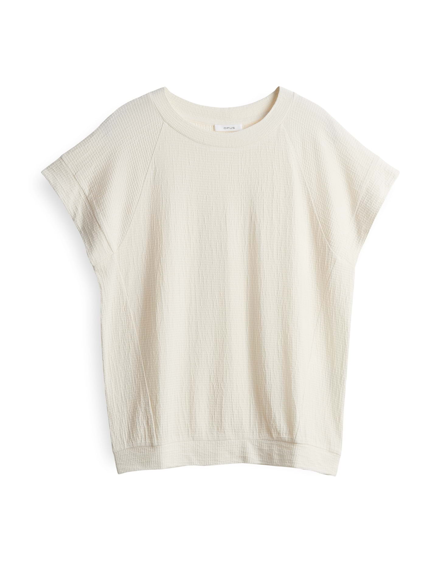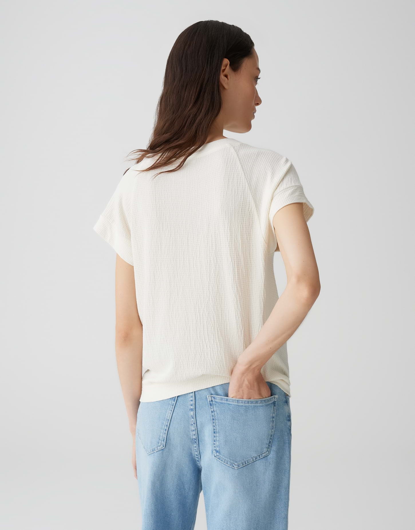 normale Passform, schmal zulaufend, normale Länge, Kurzarm, Rundhalsausschnitt, Rückenlänge ca. 58 cm bei Größe 36, Model Größe 178 cm ? trägt Größe 36, Jersey, strukturierte Oberfläche, weicher Griff, fließender Fall, breiter Saum, Raglanärmel