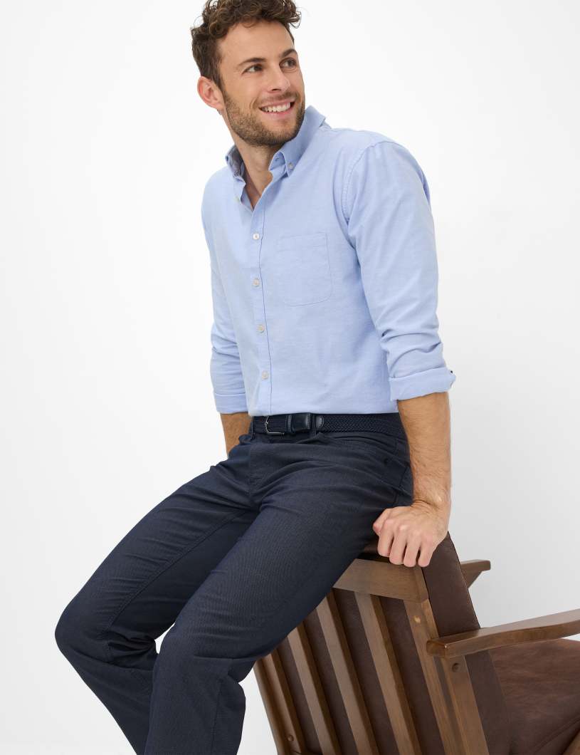 Mit urbanem Esprit und maskuliner Lässigkeit präsentiert sich die Five-Pocket-Hose im Style CHUCK als Favorit für jede Jahreszeit. Die schlanke Silhouette und der moderne Schnitt unterstreichen den individuellen Charakter und die aufgesetzten Gesäßtaschen und eine praktische Coinpocket setzen einen sportiven Akzent. Der klassische Verschluss mit Reißverschluss und Knopf sorgt für einen cleanen Look, die normale Leibhöhe garantiert ein angenehmes Tragegefühl. Gefertigt aus einem hochwertigen Baumwollmix, überzeugt das Material durch seine natürliche Atmungsaktivität. Polyester sorgt für Formbeständigkeit und Elasthan für flexible Bewegungsfreiheit. Die Struktur zeichnet sich durch ihre markante, griffige Oberfläche aus und verleiht der Herrenhose eine kernige Optik. Dank Hi-Flex profitieren Sie von außergewöhnlicher Elastizität und optimalem Komfort – für jede Bewegung und jeden Tag.
