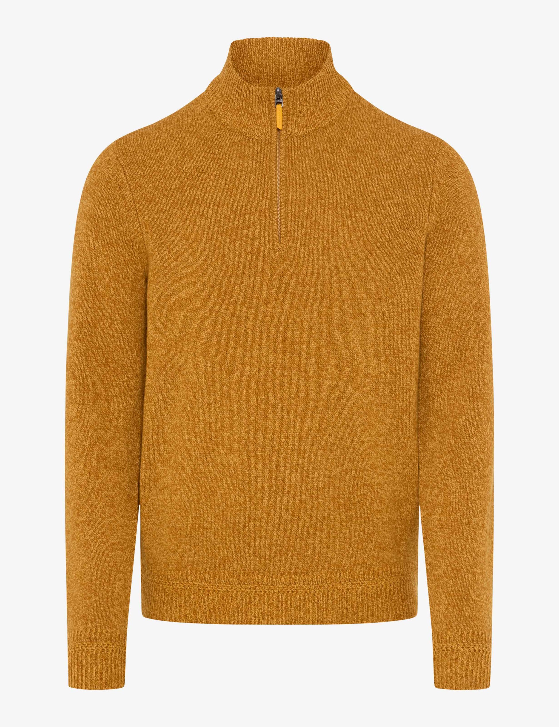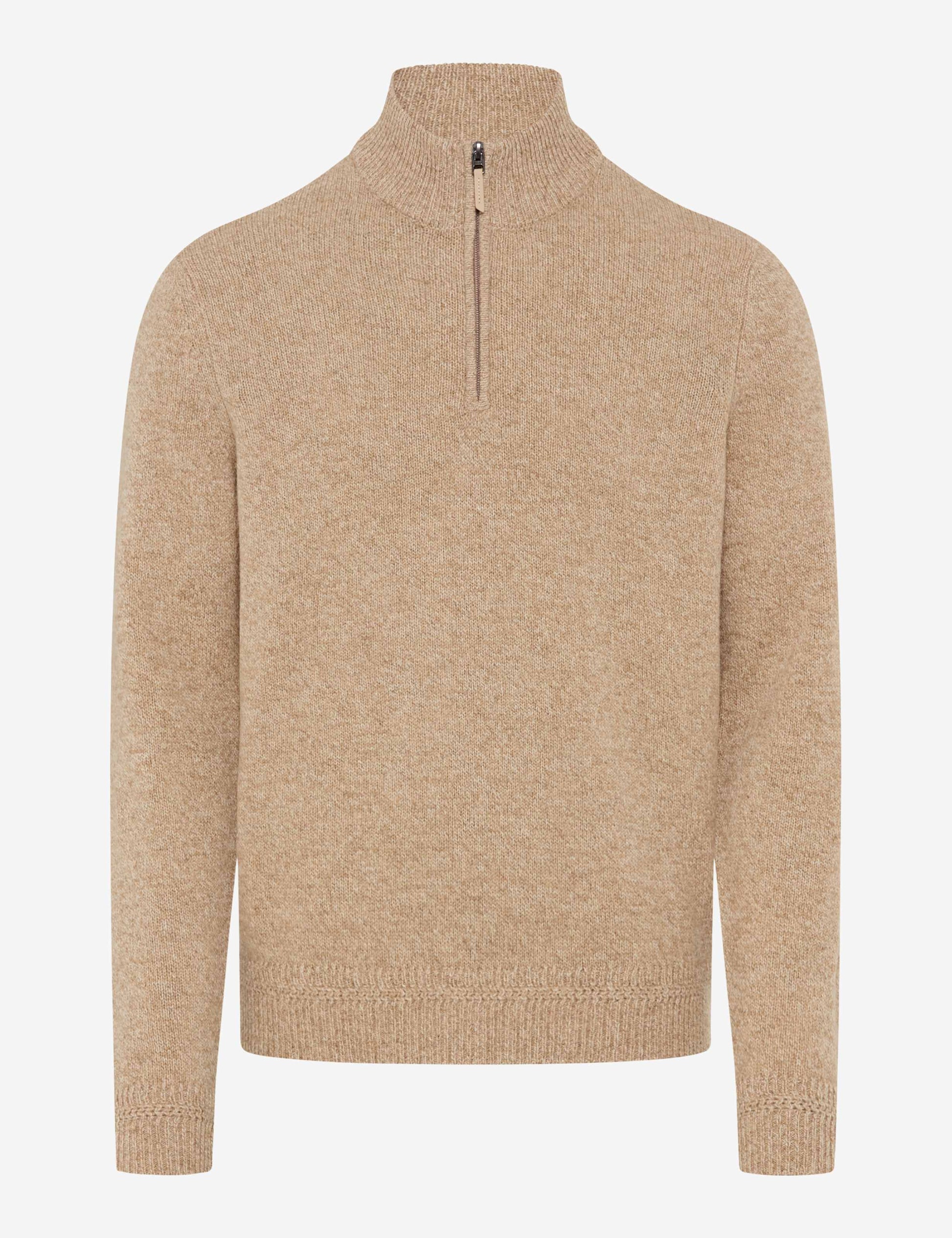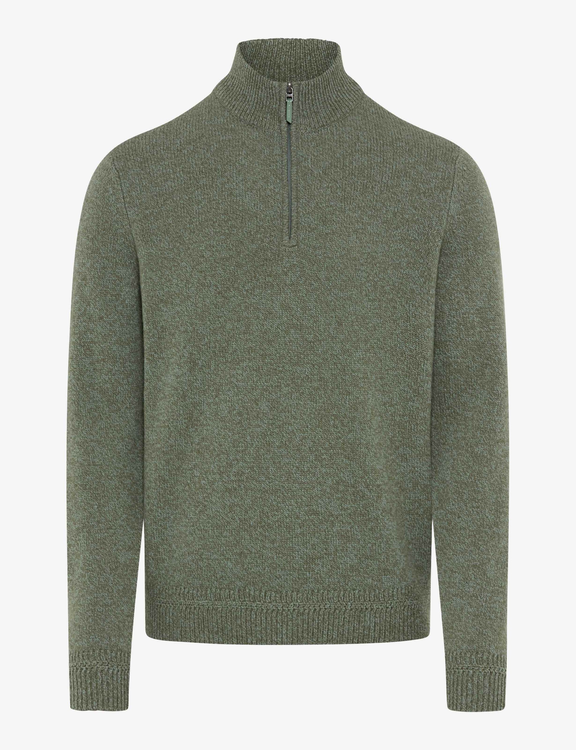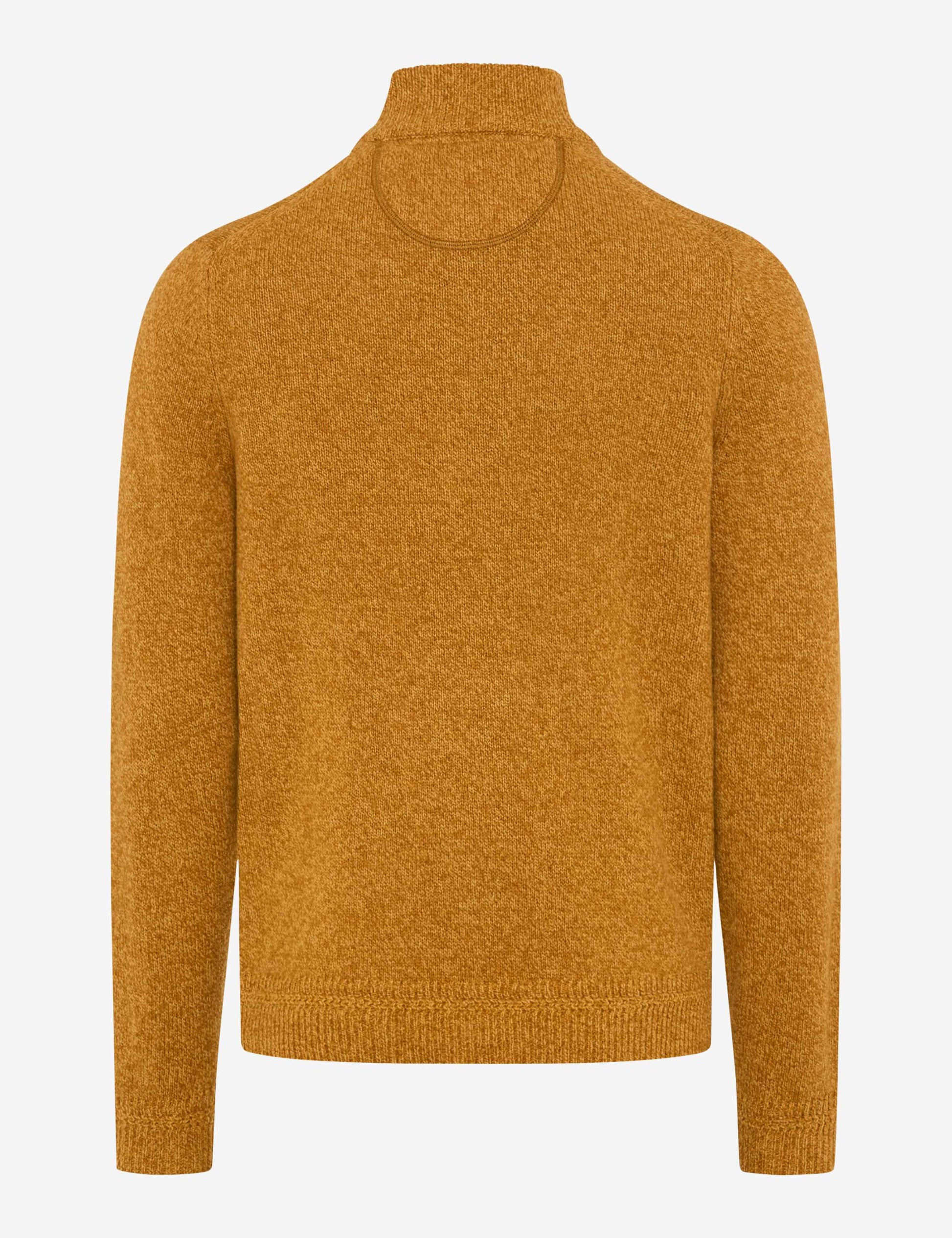 Männermode auf höchstem Niveau: Der Strickpullover im Style STEFFEN ist ein Must-Have im Winter, das Komfort und maskulinen Stil gekonnt interpretiert. Die markante Troyer-Form, geprägt vom sportiven Reißverschluss und dem hohen Kragen, sorgt an kühleren Tagen für angenehme Wärme im modernen Look. Die besondere Mouliné-Optik bringt durch ihre fein melierte Struktur eine lebendige Tiefe ins Design und unterstreicht die lässige Eleganz. Harmonisch fügt sich die hochwertige Materialwahl ins Gesamtbild: Der spürbar weiche Lambswool-Mix schmiegt sich sanft an und bietet dank seiner natürlichen Eigenschaften nicht nur angenehme Wärme, sondern überzeugt auch durch Formbeständigkeit und Langlebigkeit. Als Knitted Jersey präsentiert sich dieser Herrenpullover in einer besonders soften, gepflegten Strickqualität.