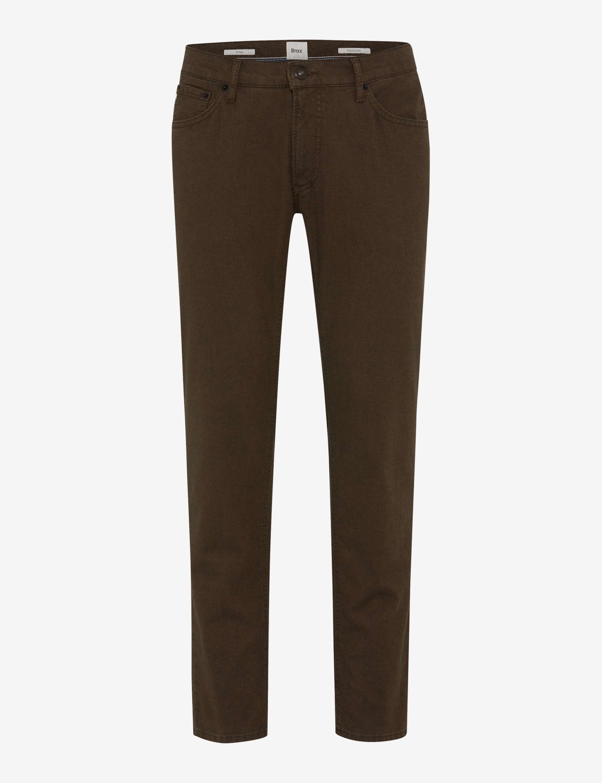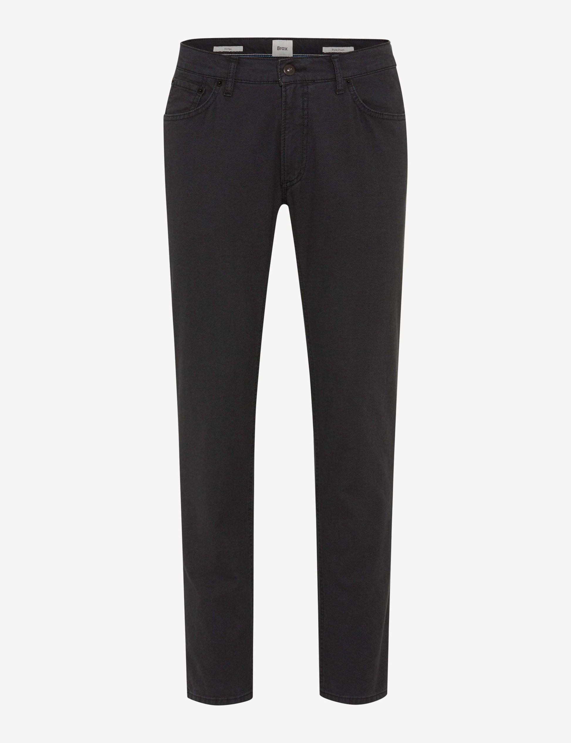 Ein vielseitiger Stil. Mit ihrer klaren Linienführung und dem maskulinen Charakter ist die Five-Pocket-Hose im Style CHUCK die perfekte Ergänzung für vielseitige Freizeit-Outfits. Die schlanke Silhouette im Modern Fit und mit normaler Leibhöhe sorgt für eine körpernahe Passform, die gleichzeitig angenehm zu tragen bleibt. Details wie aufgesetzte Gesäßtaschen, eine kleine Coinpocket und dezente Ziernieten unterstreichen die klassische Five-Pocket-Form. Durch die strukturierte Oberfläche erhält die Hose eine zusätzliche Tiefe, die dem Look eine dynamische Note verleiht. Gleichzeitig überzeugt der Baumwollmix mit einem weichen Griff und einem robusten, dennoch flexiblen Tragegefühl. Unterstützt wird der Komfort durch die elastische Hi-FLEX-Qualität, die jede Bewegung mühelos mitmacht. Diese Herrenhose ist ein echtes Essential – zeitgemäß, durchdacht und unkompliziert kombinierbar.