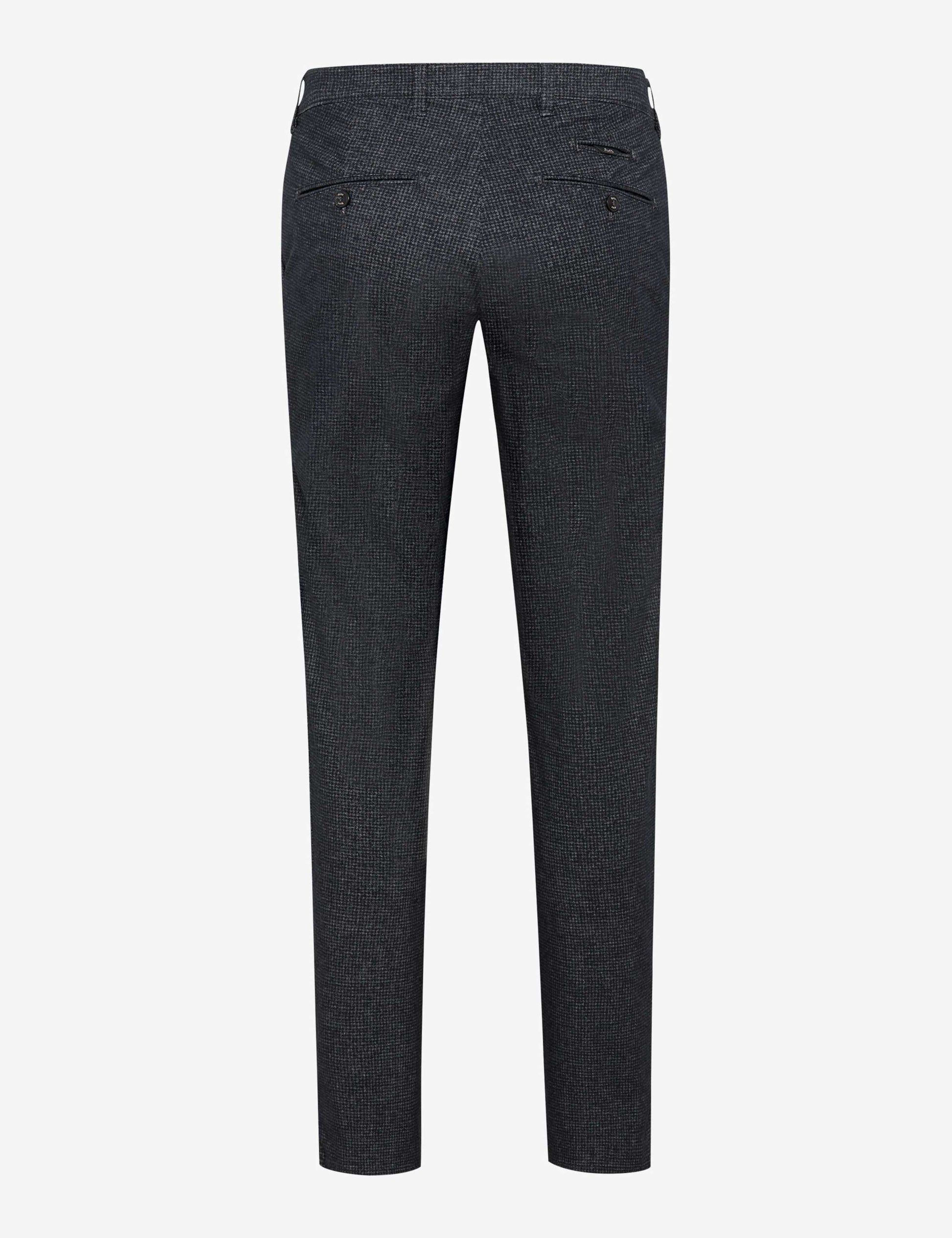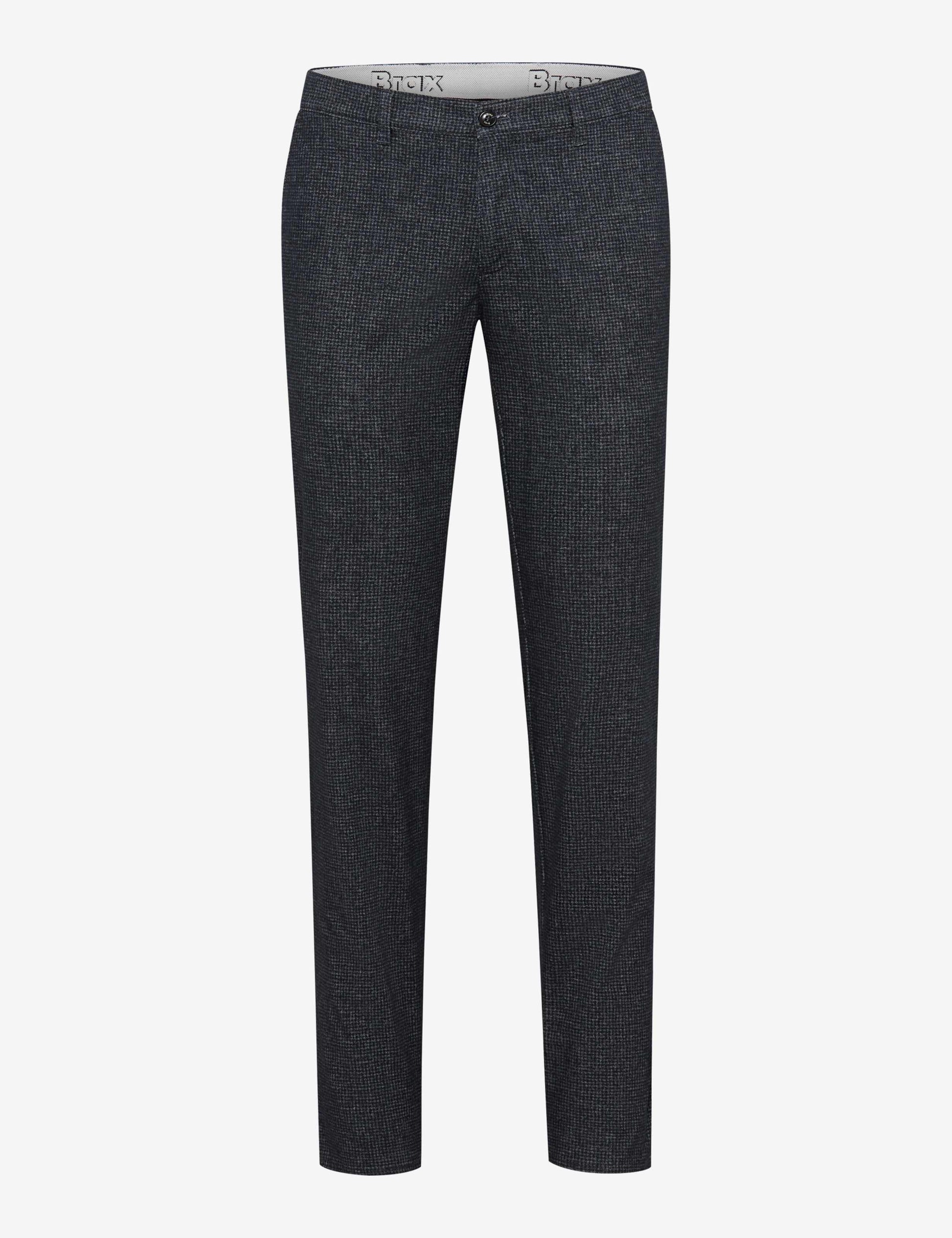 Perfekt für die kühleren Tage der Herbst- und Wintersaison präsentiert sich die Chinohose im Style FABIO mit maskuliner Eleganz und einem modernen Twist. Diese trendbewusste Hose überzeugt in einem Modern Fit mit schlanker Silhouette und normaler Leibhöhe und bietet dadurch eine zeitgemäße Passform, die stilvoll und komfortabel zugleich ist. Der cleane Flatfront-Stil wird durch raffinierte Ausstattungsdetails wie einen Bund mit edlem Zierband und dezenten Ziernieten unterstrichen. Französische Taschen, eine Coinpocket und Paspeltaschen verleihen dem Design der Hose eine klassische Note. Selbstbewusst und edel inszeniert mit einem anspruchsvollen Minimalprint. Winterlich in der Optik wird es dank Woo.Look. Damit vereint die Herrenhose anspruchsvolle Wolloptiken mit den angenehmen und soften Trageeigenschaften einer modernen Baumwollhose. Hier im Materialmix mit strapazierfähigem Polyester, geschmeidiger Viskose und komfortablem Elasthan. So lässt sich die Chino perfekt in zeitgemäße Out