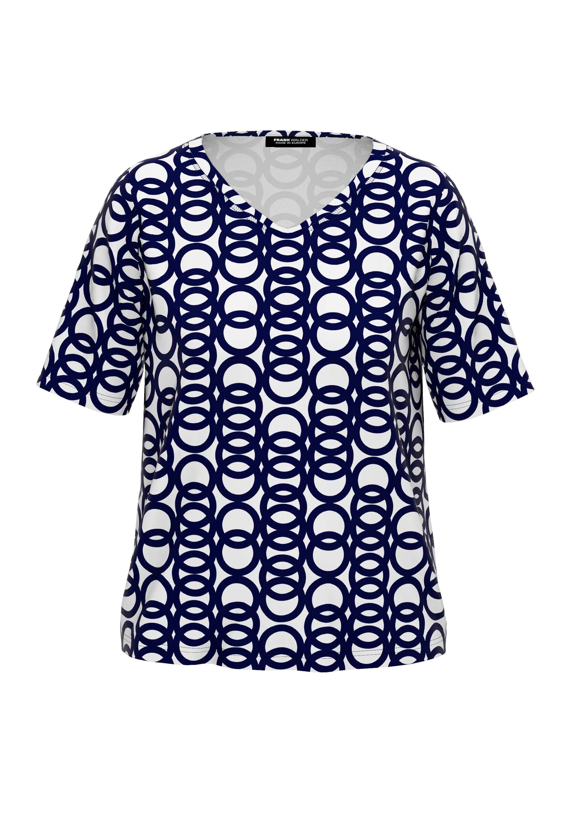 Verzaubern Sie Ihr Umfeld mit unserem Shirt für Damen in einem klassisch femininen, modernen Stil. Hergestellt aus weichem Viskose-Jersey, verspricht es Komfort und eine perfekte Passform. Das moderne geometrische Kreisdessin in ink auf ecru Fond verleiht dem Shirt einen zeitlosen Charme, während der feminine V-Ausschnitt und die Ausschnittblende mit Zierstich für das gewisse Etwas sorgen. Egal ob für Freizeit, Urlaub oder als Basic ? dieses Shirt ist ein Must-Have für jede Gelegenheit. Bestellen Sie jetzt und profitieren Sie von unseren Kaufoptionen!