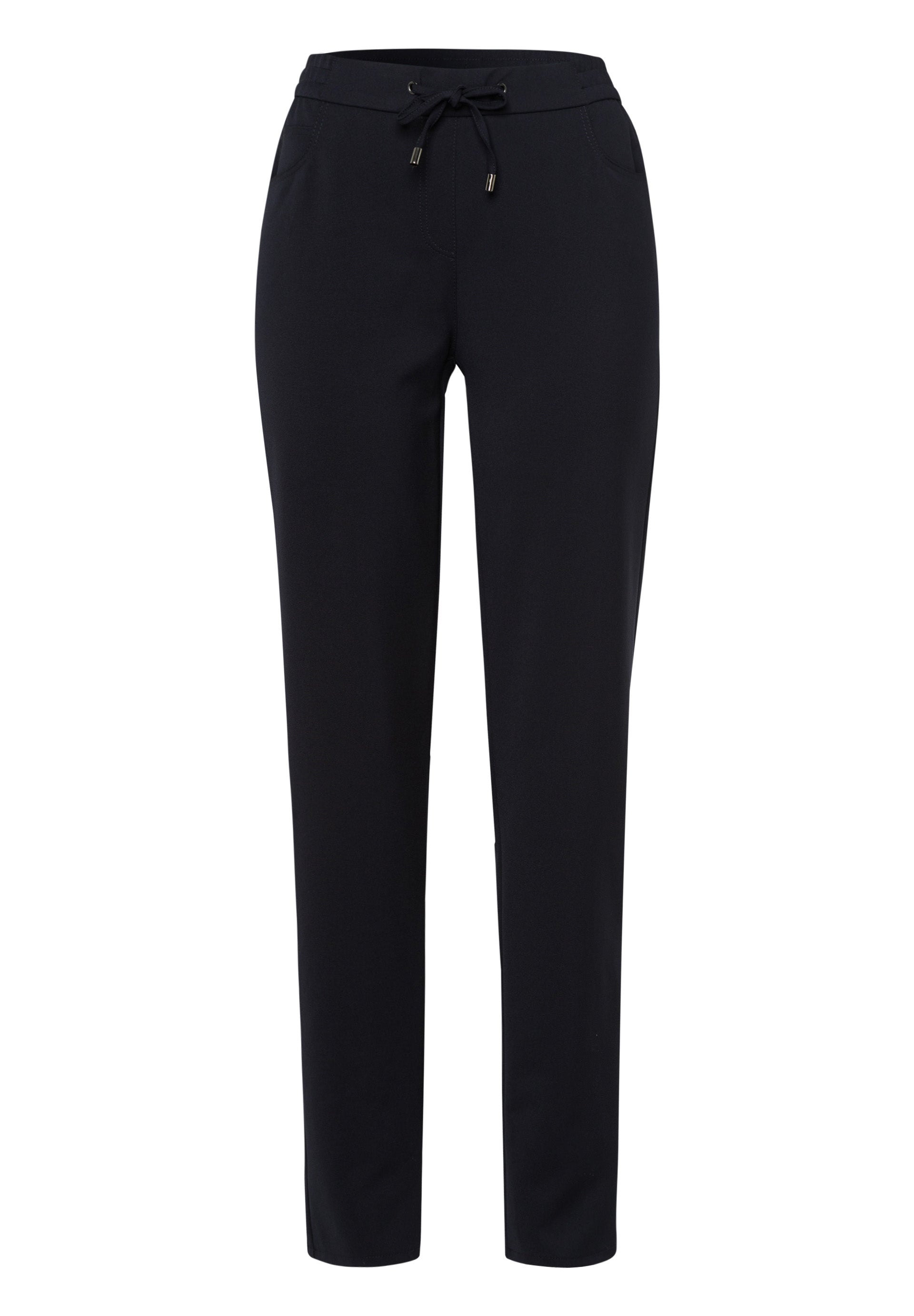 Kofferfreundliche Schlupfhose aus PES-Power-Stretch in 5-Pocket-Optik. Mit diesem Style genießen Sie ein komfortables Trage-Gefühl. Der elastische Bund ist mit Ösen, einem Bindeband und Kordelenden ausgestattet. Vorderseitige Eingrifftaschen werden im Rückteil von dekorativen Gesäßtaschen ergänzt. Moderne Steppnähte machen es zu einem schmeichelnden Lieblingspiece.