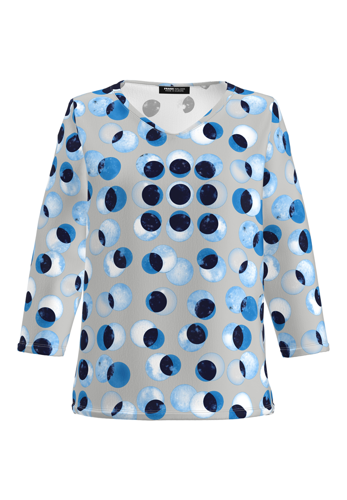 Für diesen Artikel wurde kein optimales Bild gefunden. Das Bild zeigt einen anderen Artikel aus der selben Modellgruppe. Farbe und Muster können stark abweichen.Das moderne Basicshirt für Damen kombiniert zeitlosen Stil mit femininer Eleganz. Hergestellt aus hochwertigem CV-Jersey-Druck und ECOVERO™ Fasern, ist es pflegeleicht und nachhaltig. Der gerundete V-Ausschnitt mit Paspelierung und der graphische Print mit cranberry Akzenten verleihen ihm eine besondere Note. Mit seiner bequemen Passform und den 3/4-Ärmeln ist es ideal für alle Gelegenheiten. Ein vielseitig tragbares Basic, perfekt zum Kombinieren.