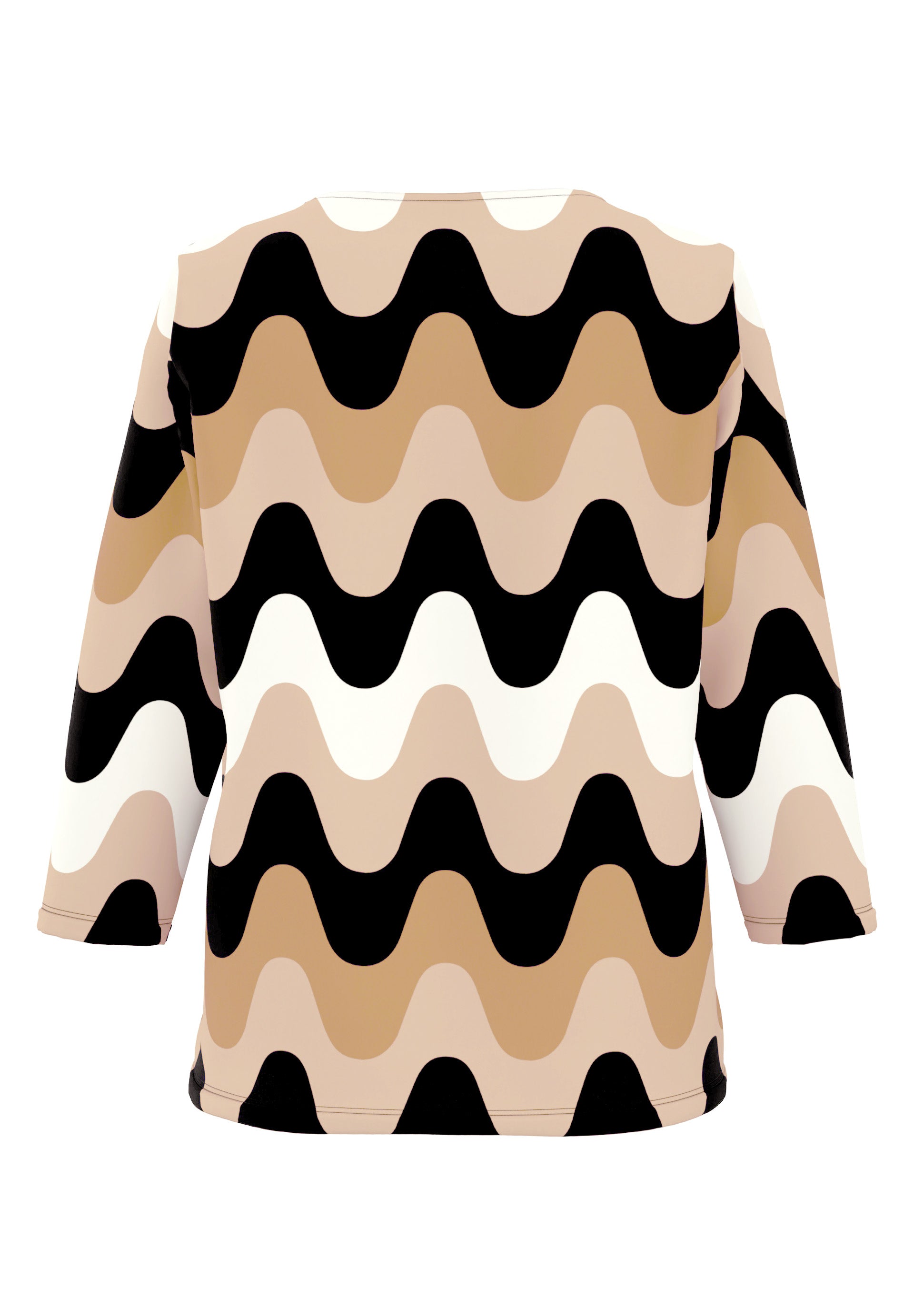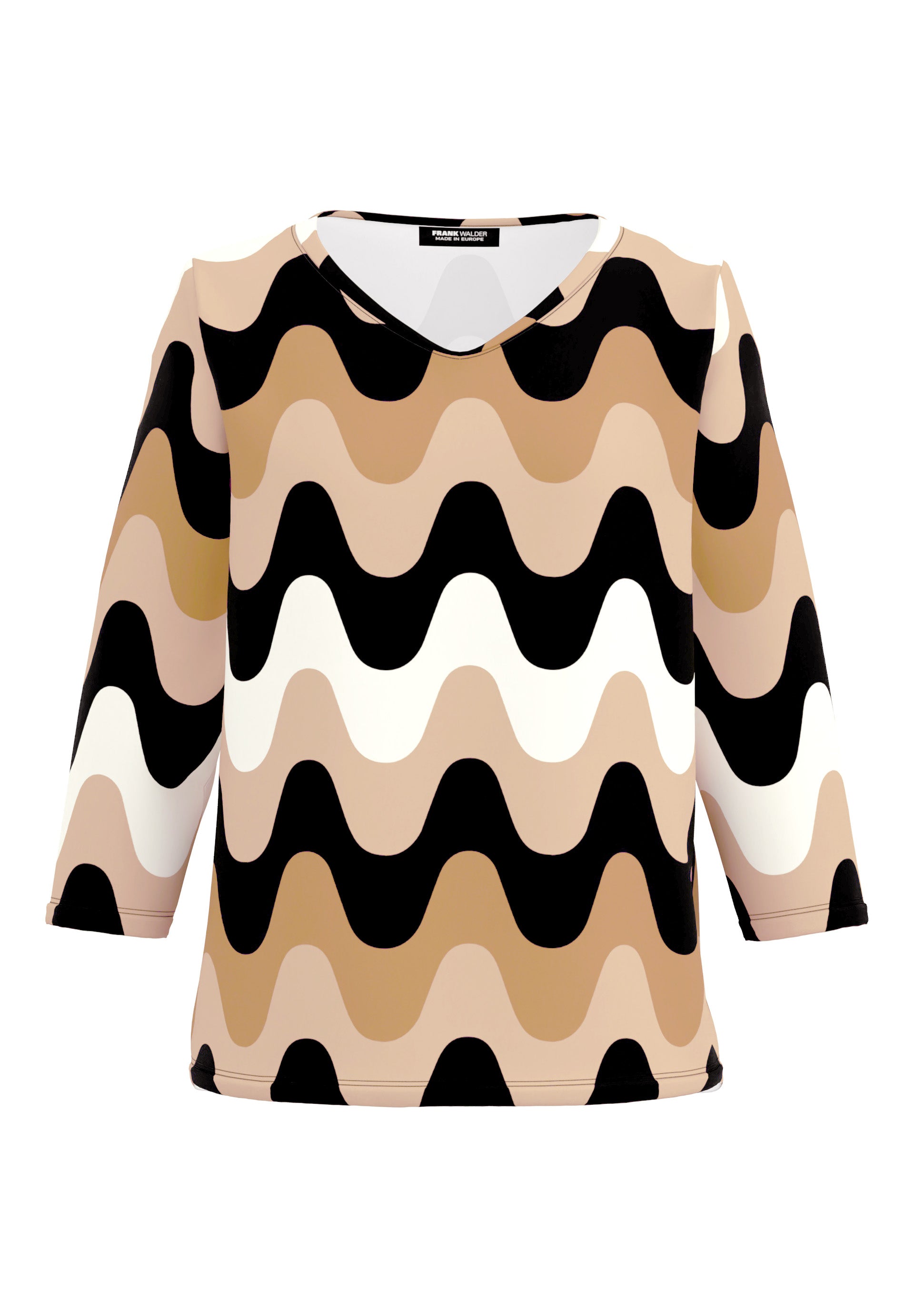 Entdecken Sie das moderne Basicshirt, das sich perfekt in Ihren Kleiderschrank einfügt. Der gerundete V-Ausschnitt mit feminin verlaufender Paspelierung zaubert ein schönes Dekolleté und die 3/4 langen Ärmel machen es perfekt für alle Gelegenheiten.