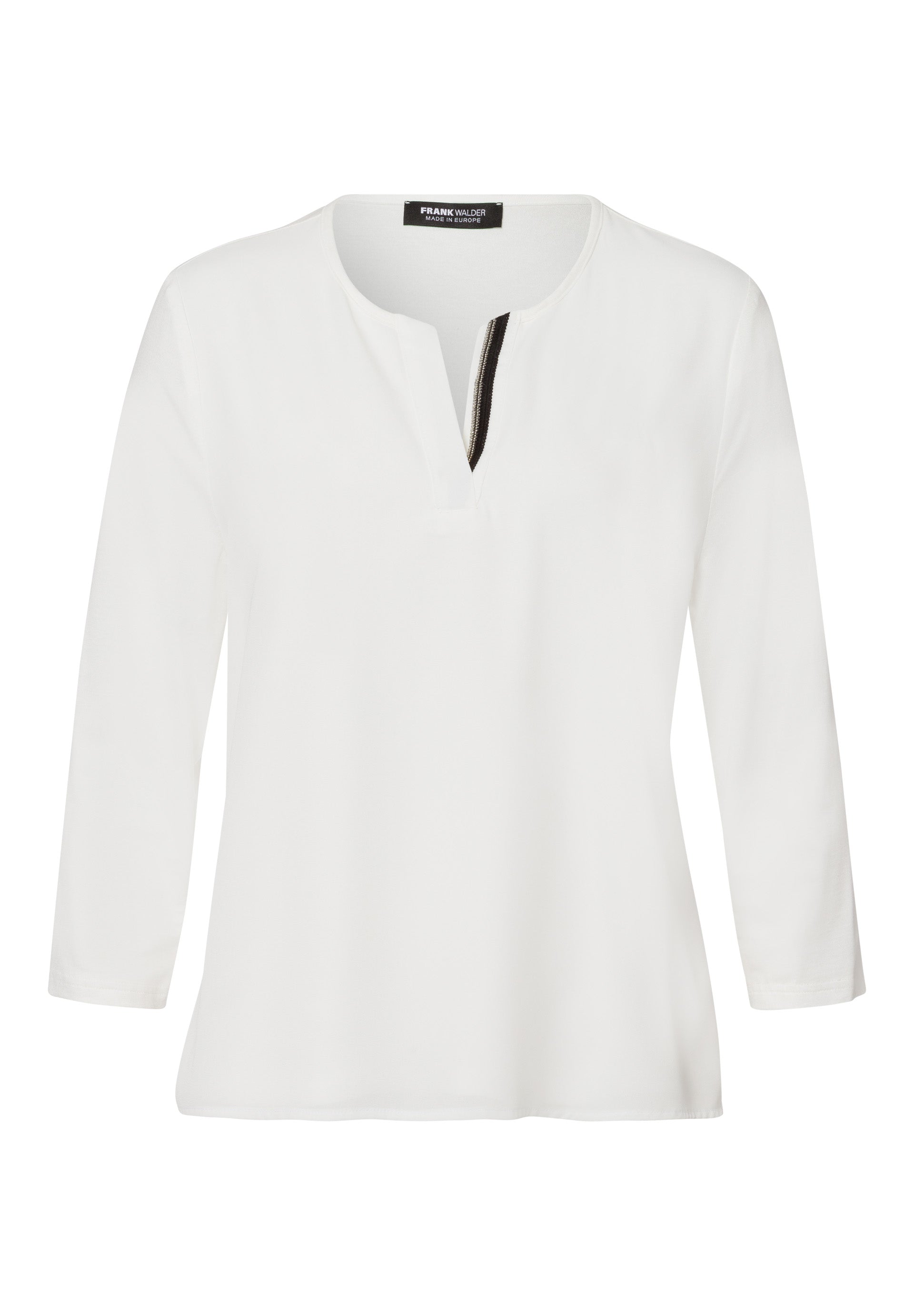 Das Blusenshirt besticht durch seine locker fließende Passform und der dekorativen Ausschnittblende. Hergestellt aus Ecovero-Viskose-Jersey im Mix mit Webware. Mit blickdichtem Vorderteil ist es perfekt für vielseitige Kombinationen und ideal für elegante und legere Looks.