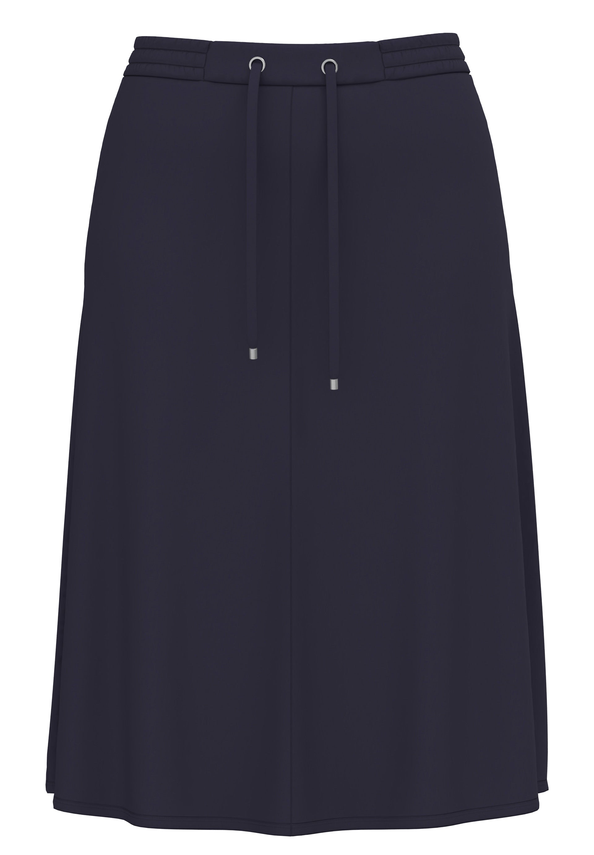 Knieumspielender Rock mit elastischem Bund und Kordelzug. Minimalistisches Design mit fließendem Stoff, ideal für elegante oder lässige Outfits