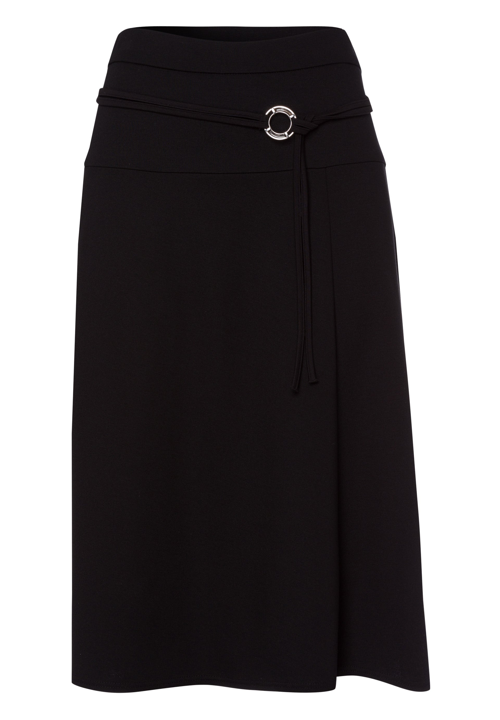 Wenn Sie Röcke lieben steht diese Form für den perfekten Look. Leicht ausgestellte A-Linie in kniebedeckter Länge. Die vorteilhafte Passe zaubert um die Hüfte eine schlanke Silhouette. Dank Stretch-Anteil und bequemen Elastikbund bietet er einen idealen Trage-Komfort. Der dekorative Bindegürtel mit seinem Zierteil rücken den Rock ins Rampenlicht.