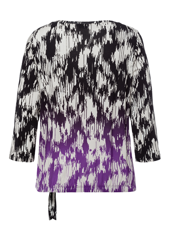 Das charmante Damenshirt begeistert im modernen und einzigartigen Ablaufprint und schmeichelt in softer Viskose. Feminin gestalteter Rundhalsausschnitt und mit 3/4 Arm. Für einen lässigen Fit sorgt der eingearbeitete Gummi am Saum, sowie ein modisches Knotendetail.
