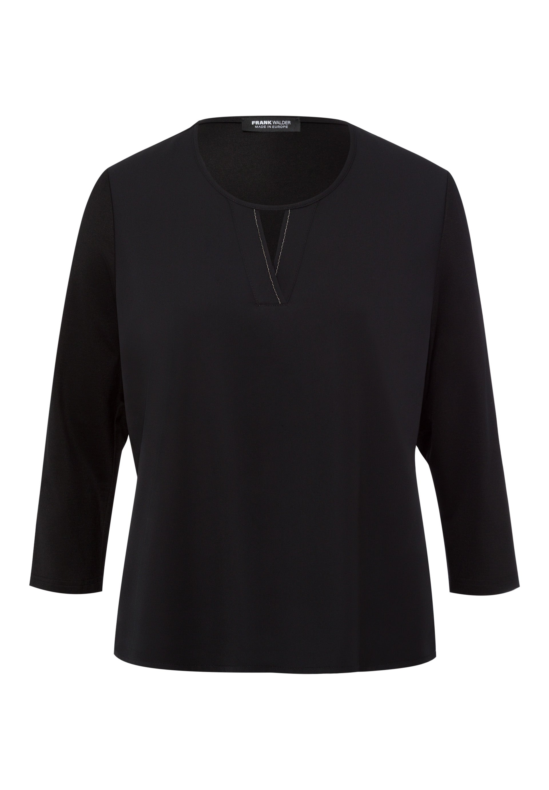 Blusenshirt - schlicht, edel und elegant. Ein ganz besonderer Style mit chicer Ausschnittblende und dekorativer Schmuckkette. Das gedoppelte Vorderteil ist aussen gewebt, Rücken und Ärmel sind aus softem Jersey. Eine sichere Wahl für viele Gelegenheiten.