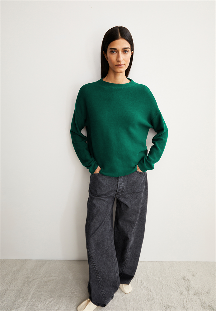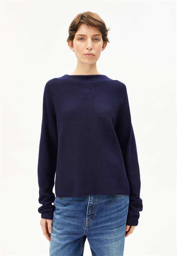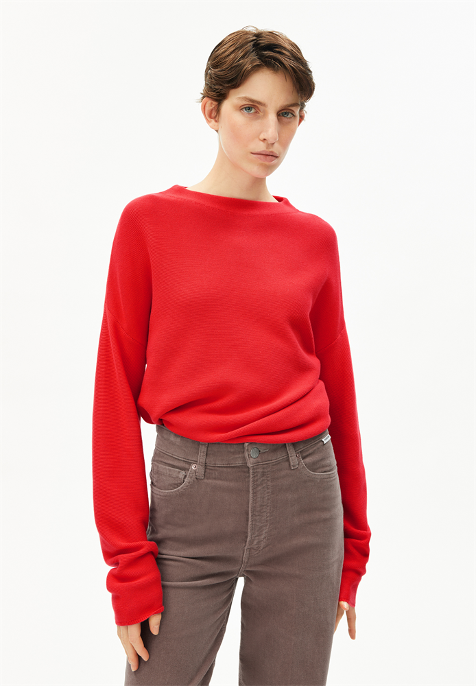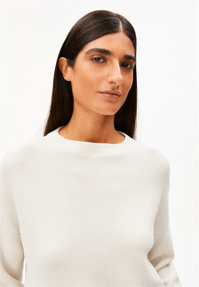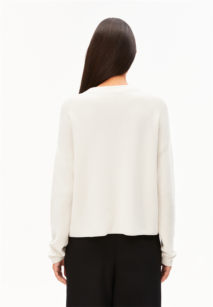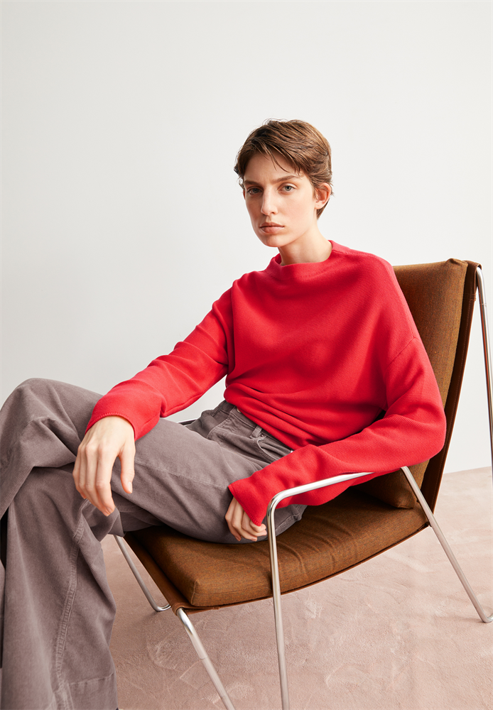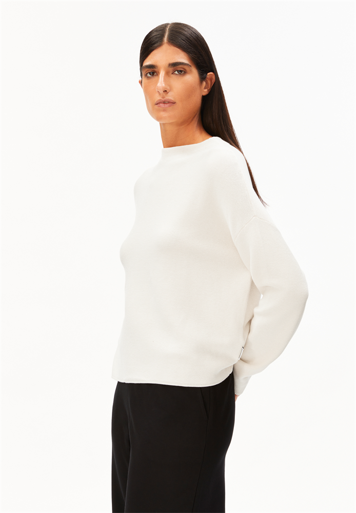 The MERINAA LINKS LINKS fine knit sweater boasts a loose, casual fit and a modern mock neckline. Made from 100% organic cotton, it feels soft to wear and is perfect for relaxed looks.