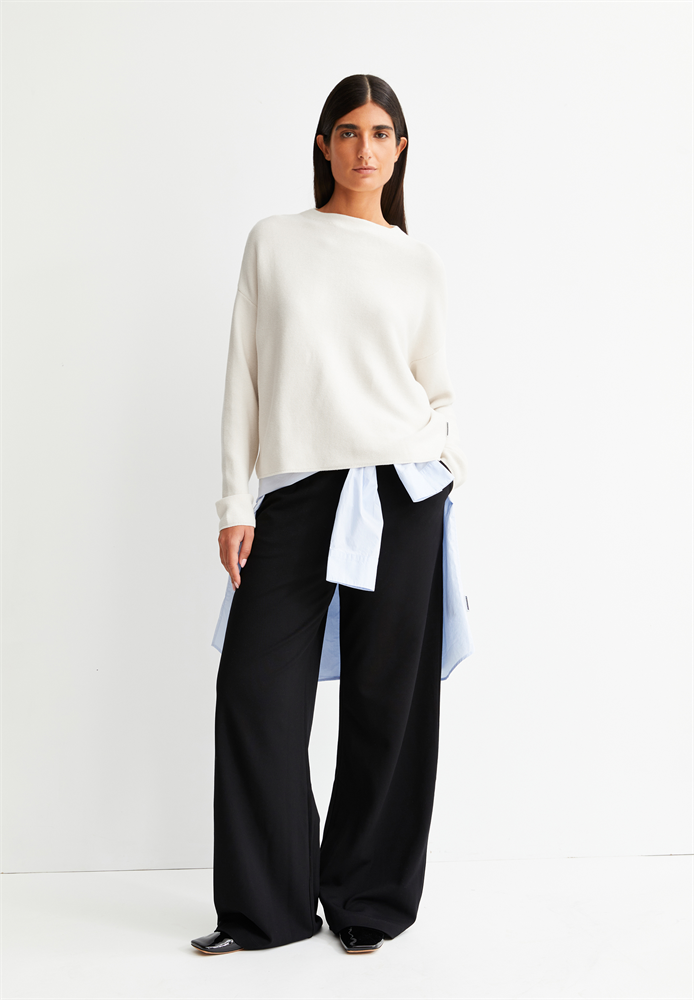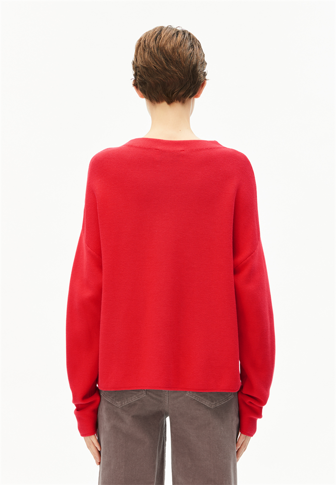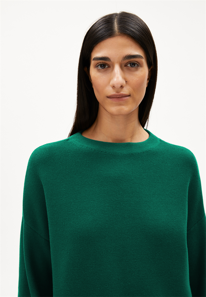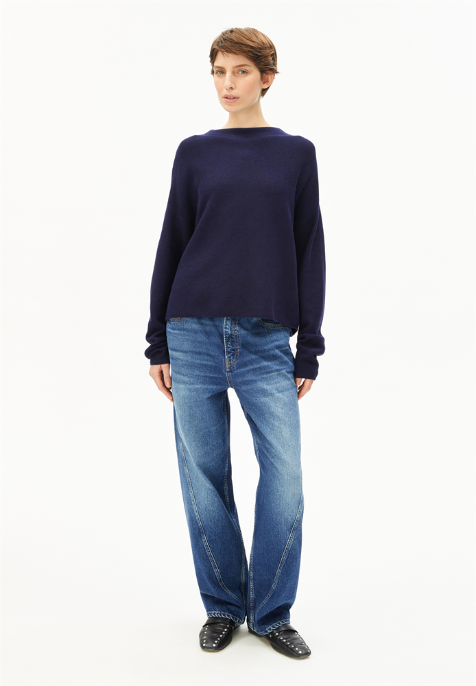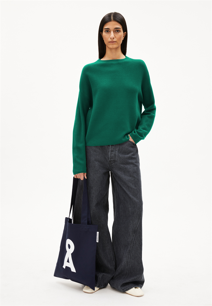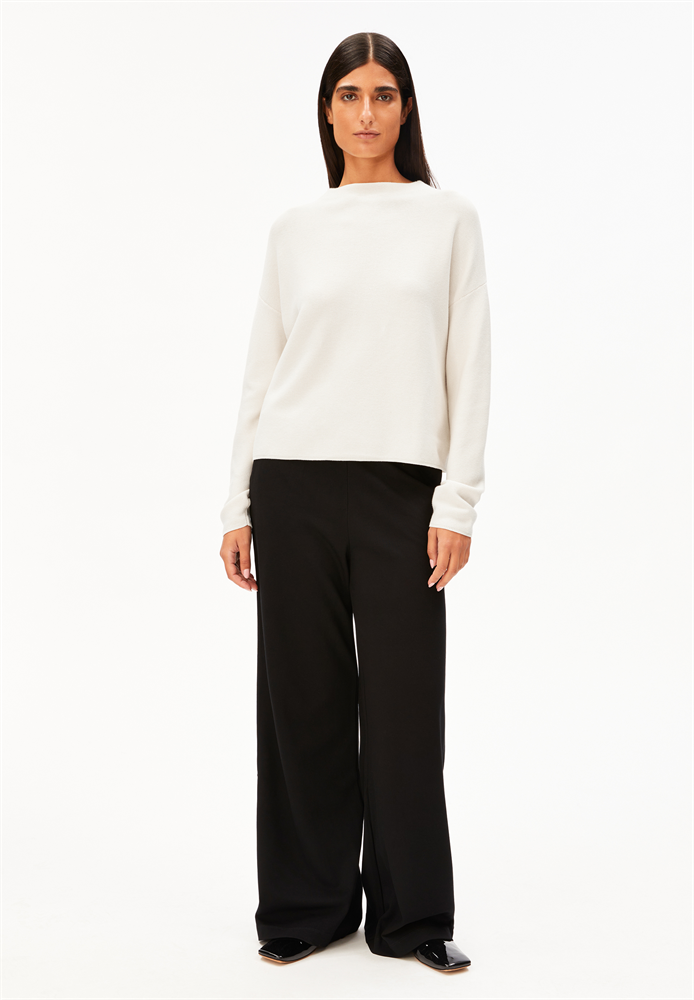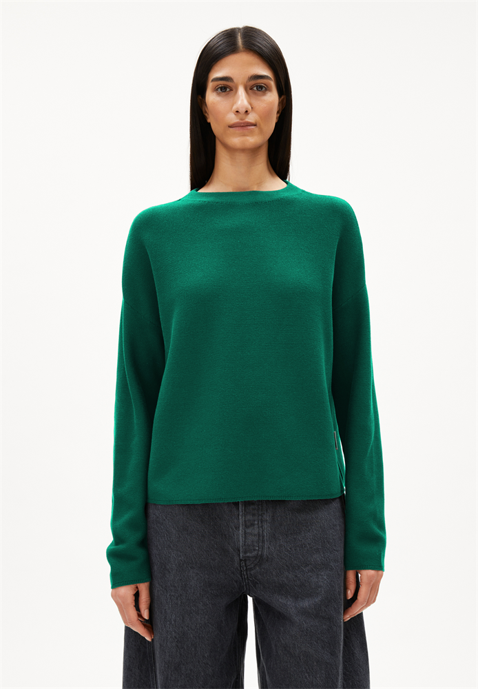 The MERINAA LINKS LINKS fine knit sweater boasts a loose, casual fit and a modern mock neckline. Made from 100% organic cotton, it feels soft to wear and is perfect for relaxed looks.