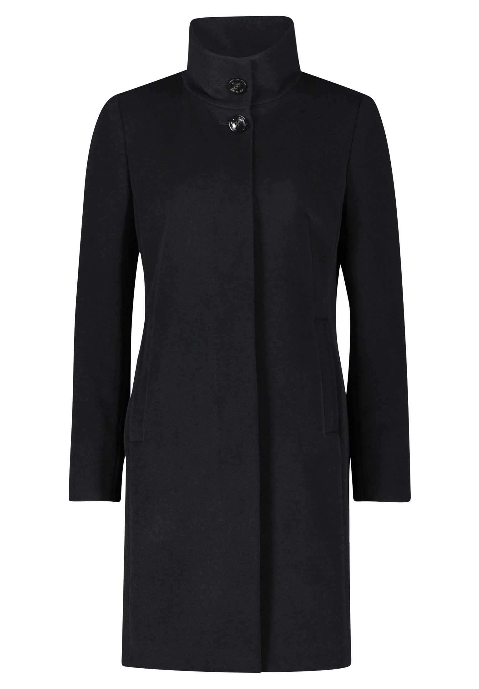 * Passform: Leicht tailliert * Gesamtlänge: 92 cm * Ärmel: Langarm * Kragen: Stehkragen * Tasche: Paspeltasche * Verschluss: Knopf, Verdeckter Verschluss * Muster: Uni * Futter: 100% Polyester