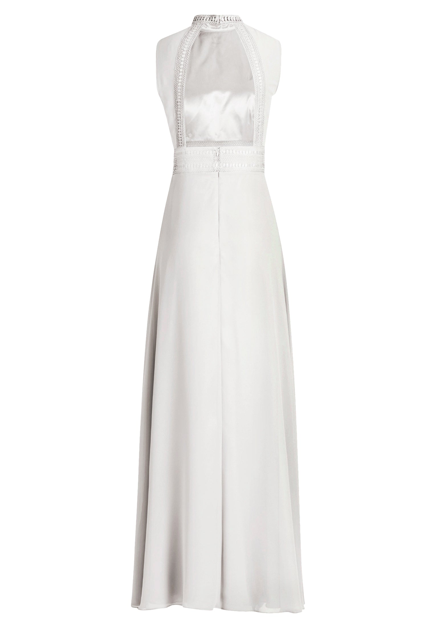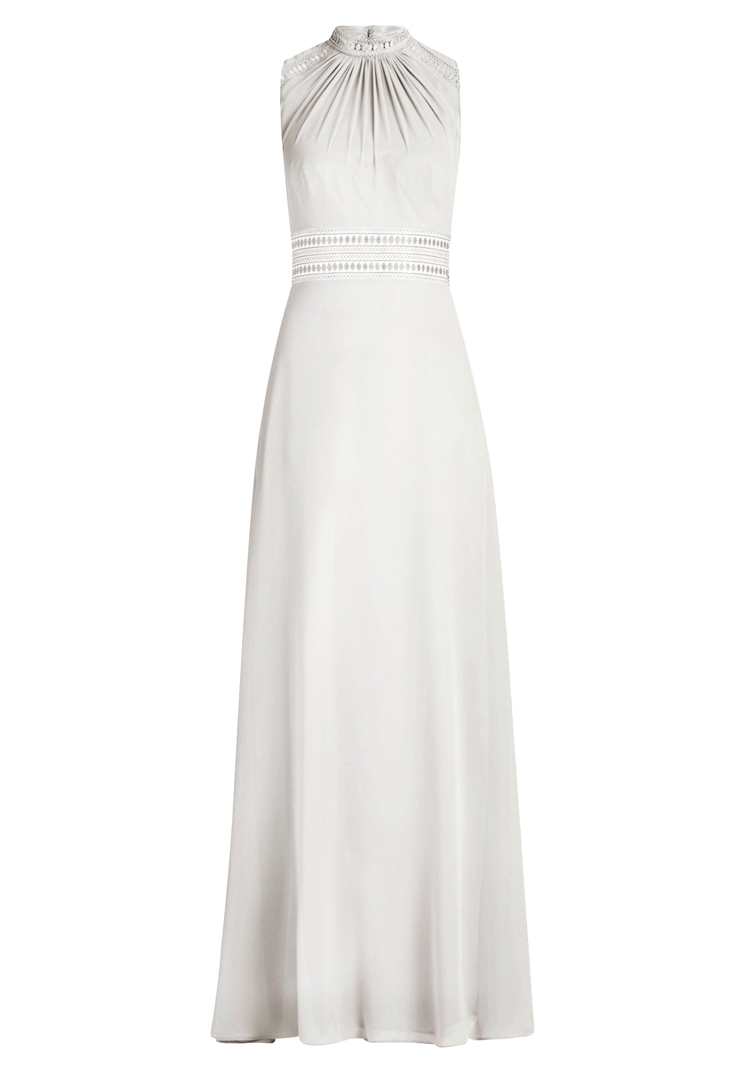 * Passform: Ausgestellt * Gesamtlänge: 157 cm * Länge ab Taille: 115 cm * Ärmel: Ärmellos * Ausschnittdetail: Raffung/Kräuselung * Kragenform: Stehkragen * Längeninfo: Maxi * Materialart: Chiffon * Verschluss: Haken und Ösen, Reißverschluss * Muster: Uni