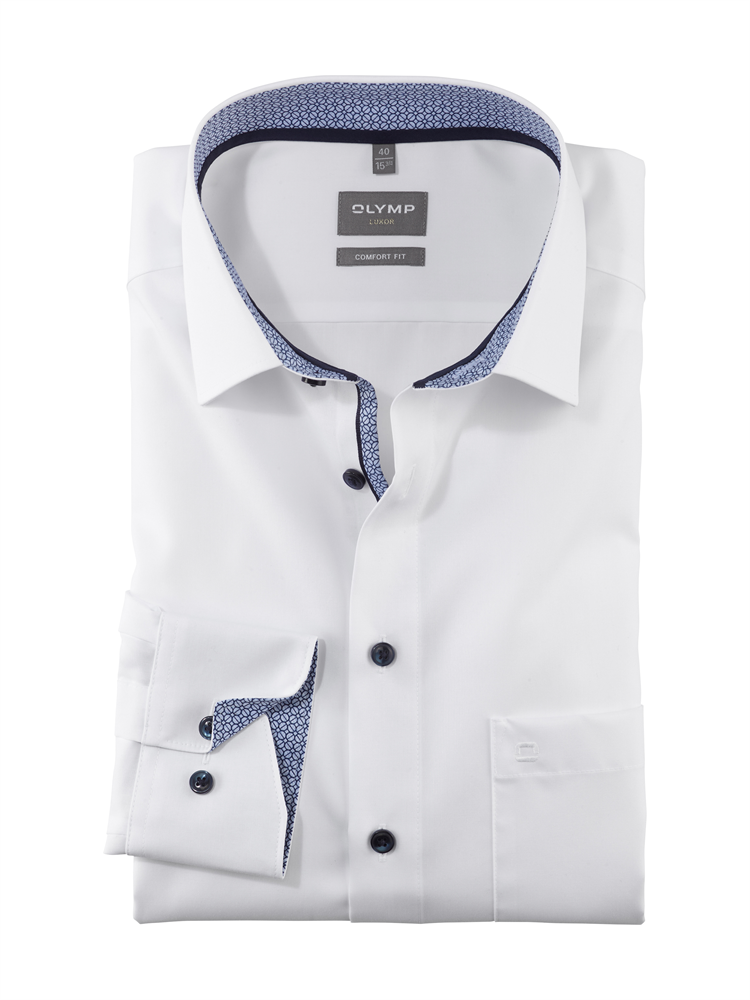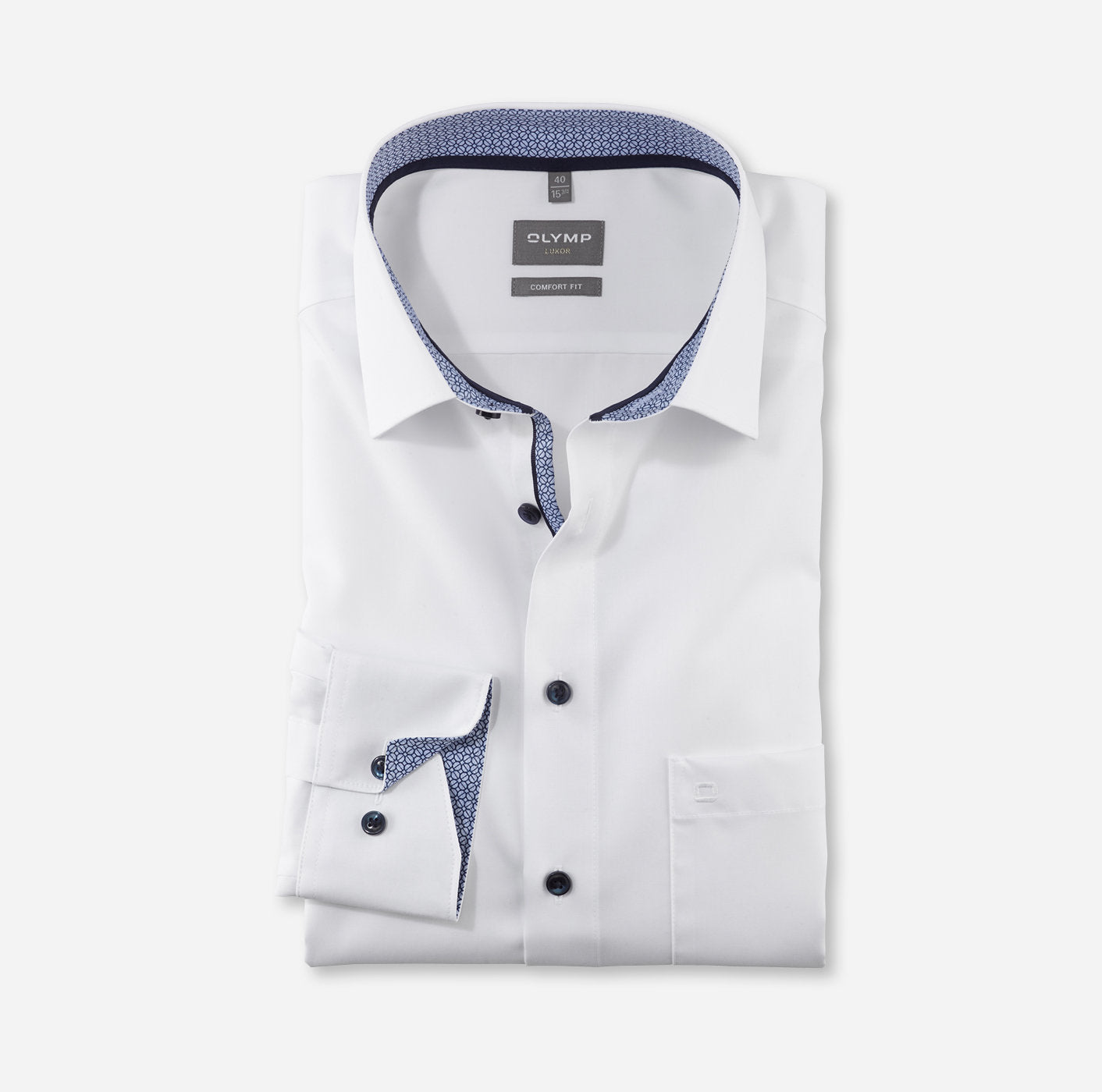Mehr Souveränität durch faltenfreien Auftritt: Das exklusive Businesshemd mit extra langem Arm der Linie OLYMP Luxor comfort fit mit grenzenloser Bügel- und Knitterfreiheit. Auch bei hitzigen Debatten angenehmer Tragekomfort dank atmungsaktiver und hautsympathischer Stoffe. Der Oberstoff in Weiß akzentuiert den Besatz am Krageninnensteg und den Innenmanschetten. Nicht zuletzt machen der New-Kent-Kragen und weitenverstellbare Kombimanschetten OLYMP Luxor zum idealen Geschäftspartner. Business im OLYMP.