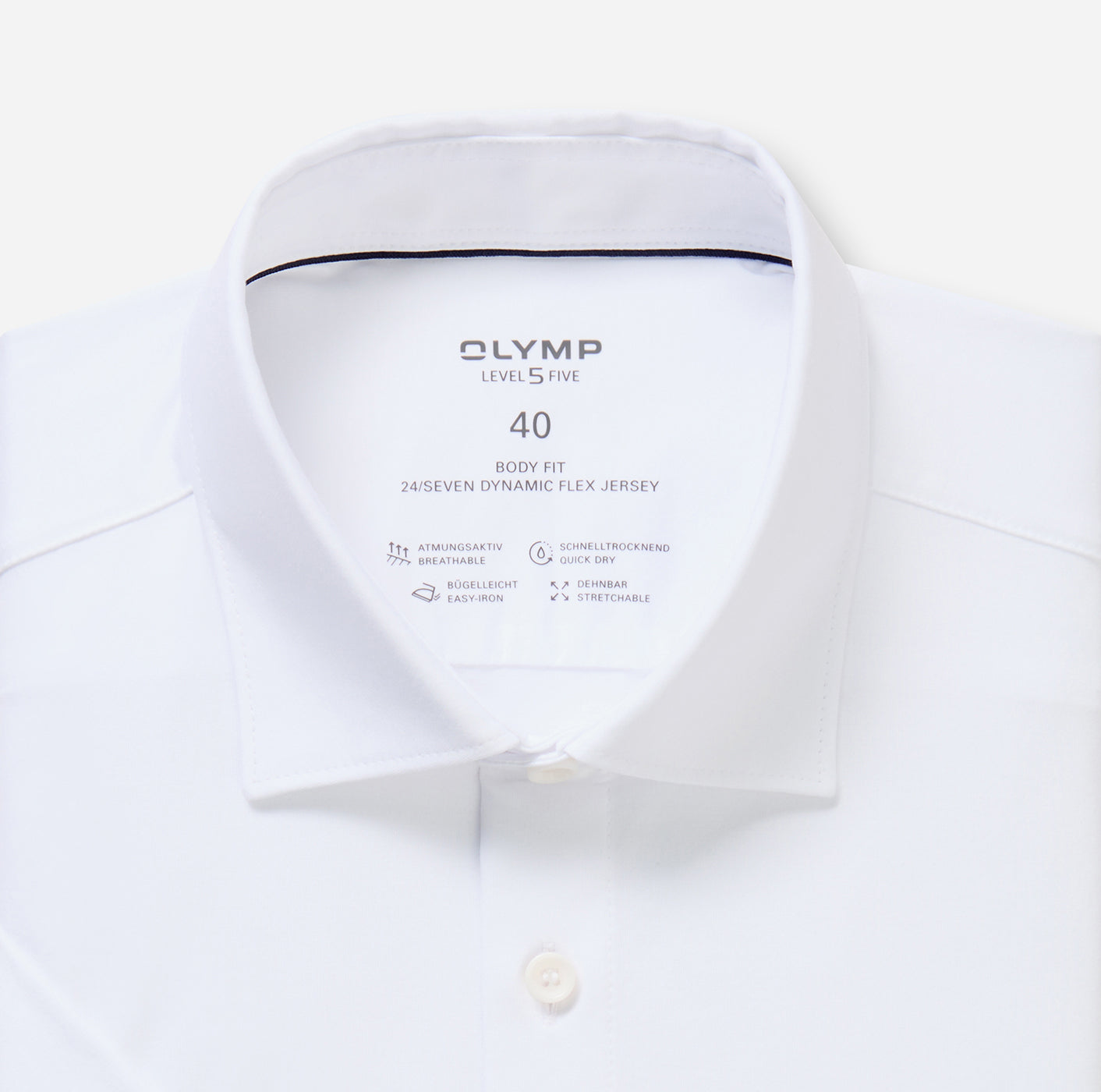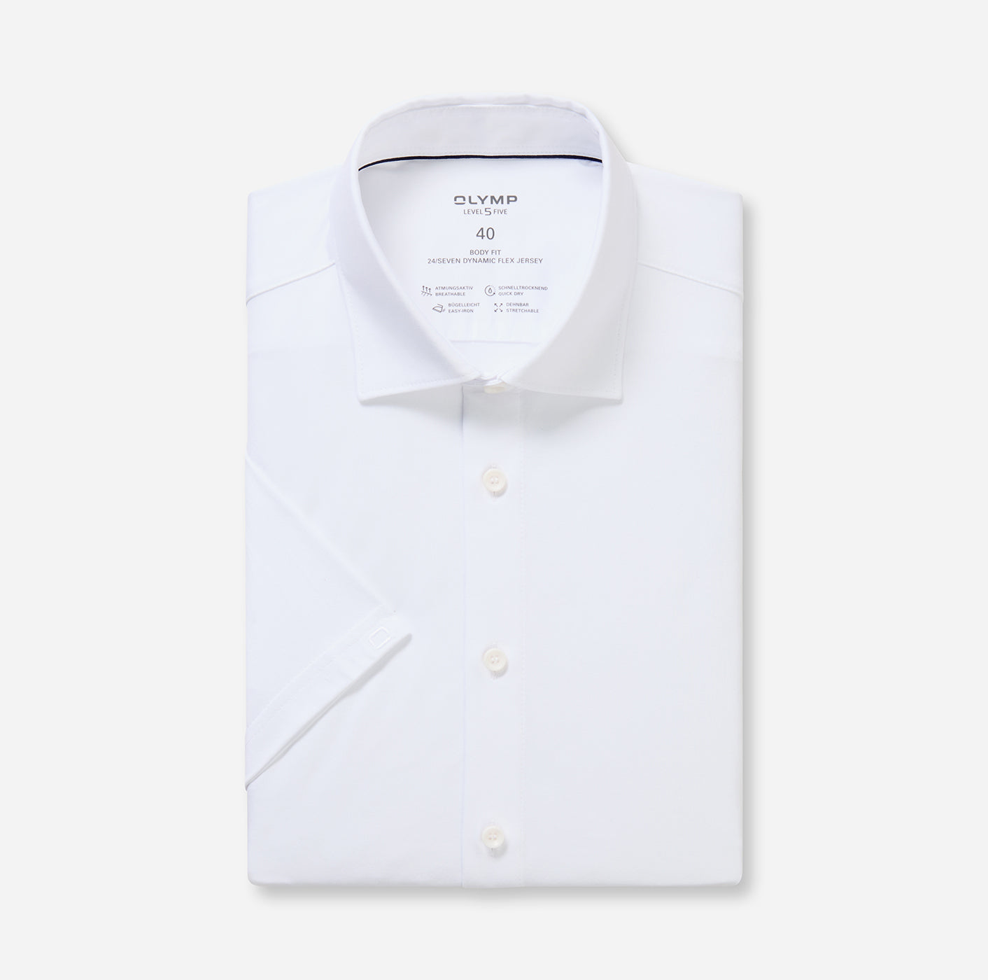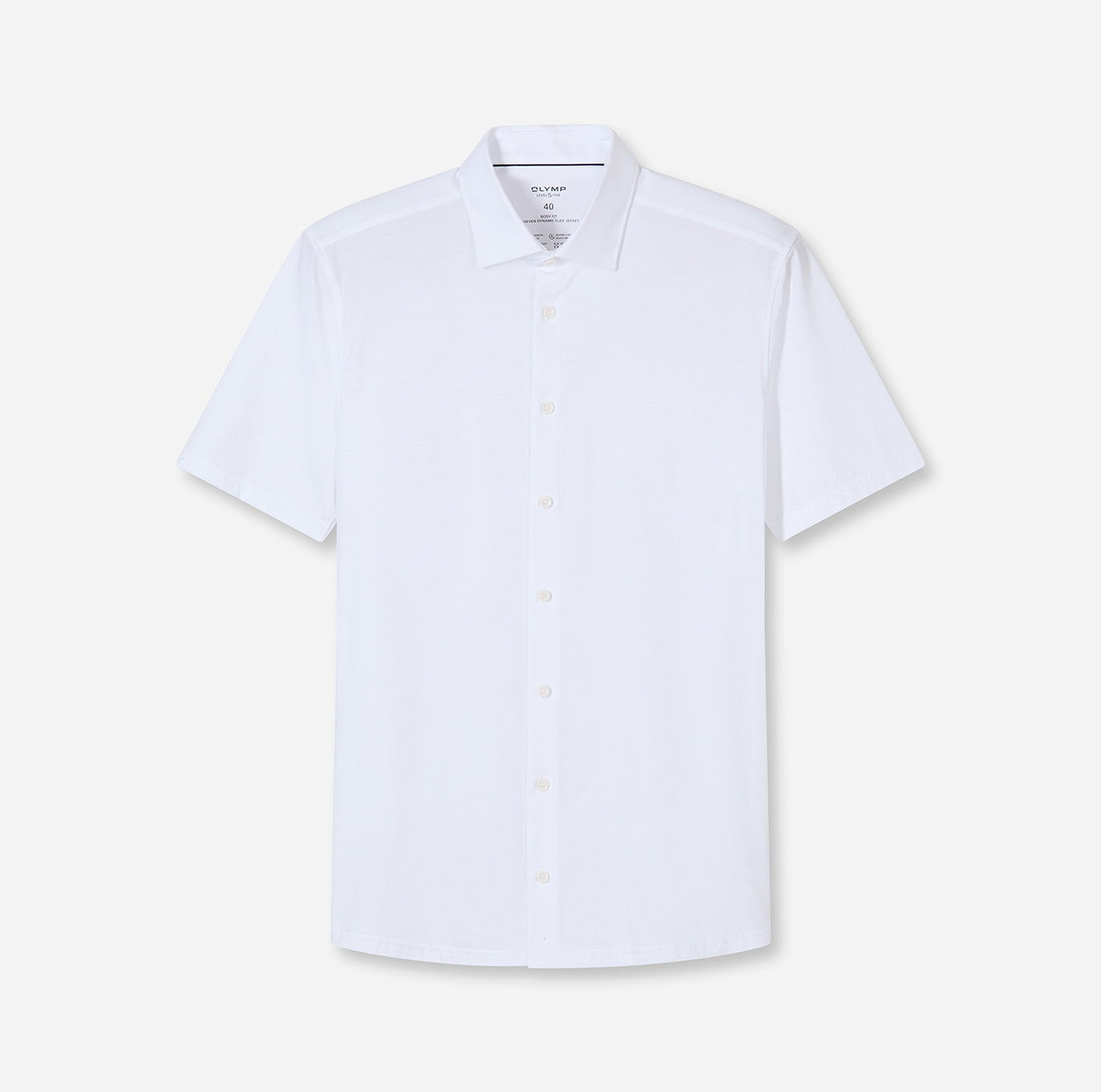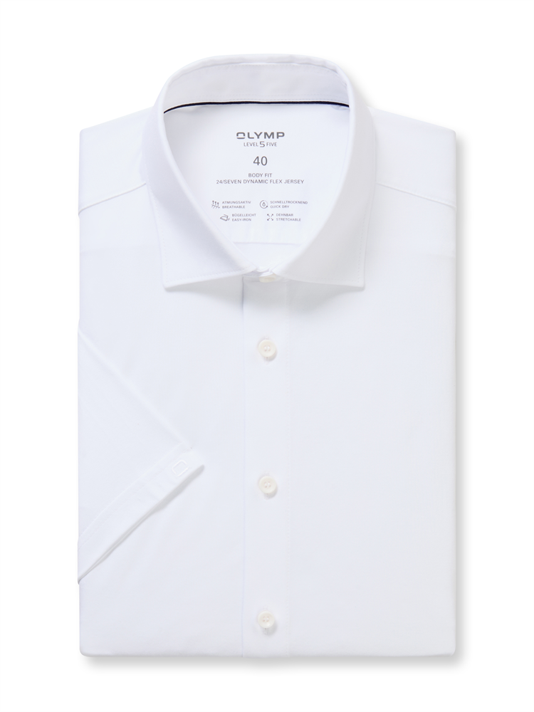Einfarbig weiß und in vielen aktuellen Farbtönen präsentiert sich dieses junge OLYMP Level Five 24/Seven Businesshemd aus Dynamic Flex Jersey. Das Material ist superleicht, hoch elastisch, atmungsaktiv, schnelltrocknend und bügelleicht. Luftiger Halbarm, perfekt für Frühling und Sommer. Sportlich-elegante Linie, softer Kent, lässig gerundeter Saum.