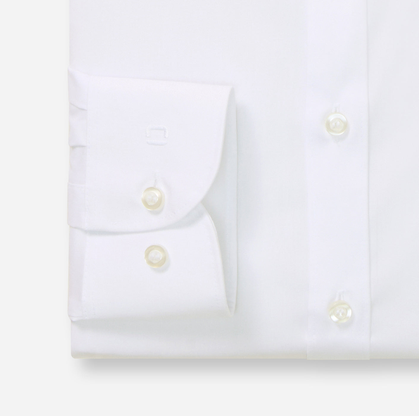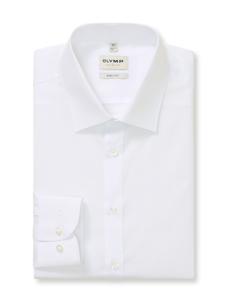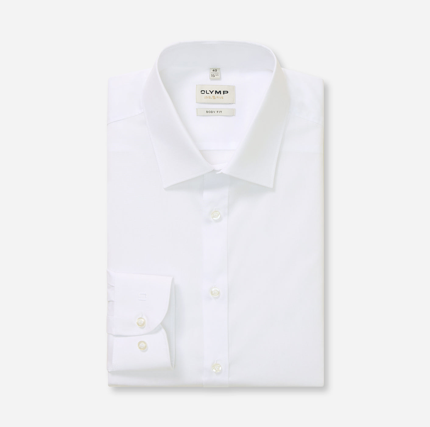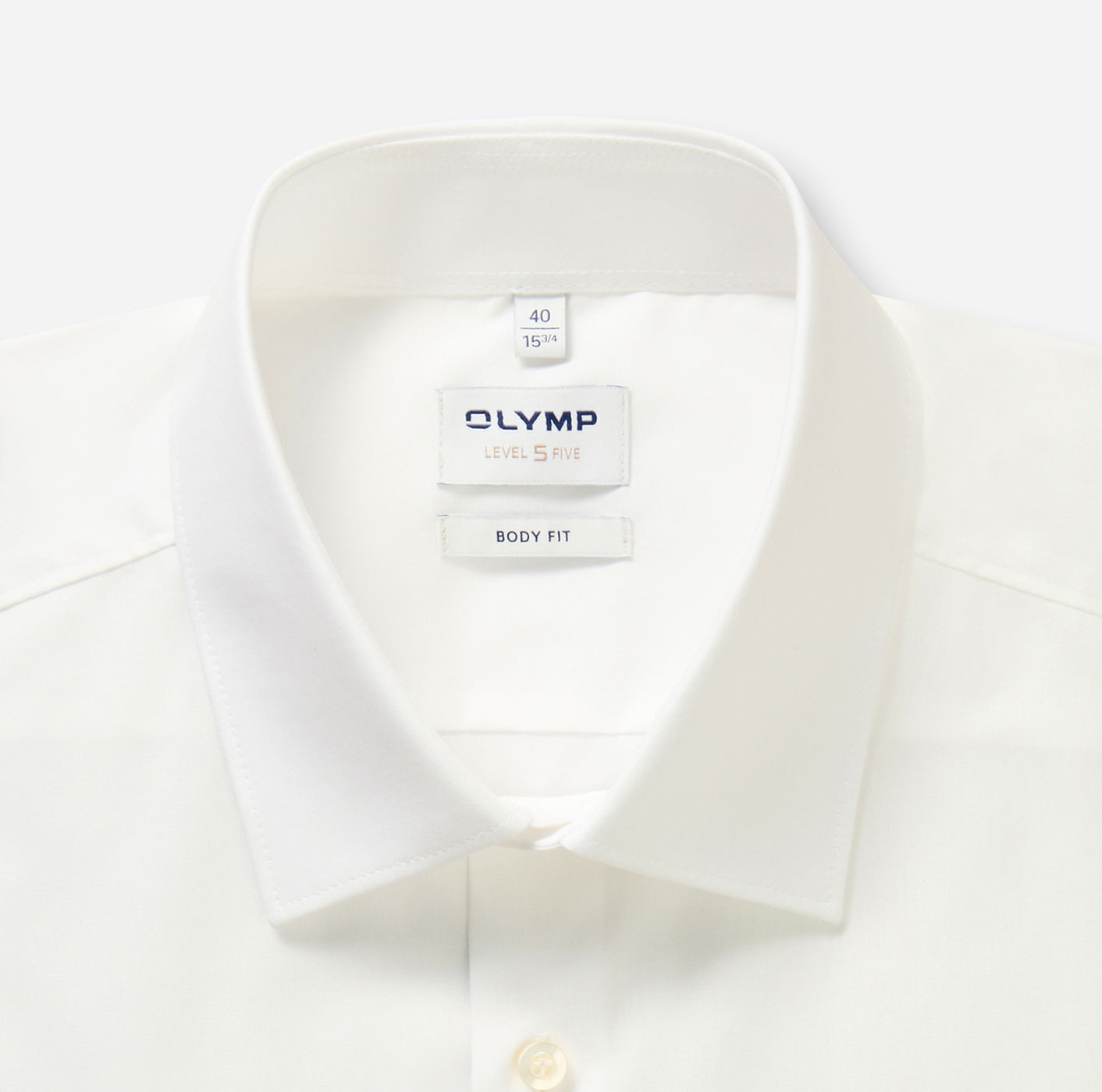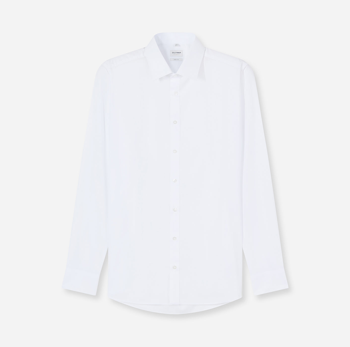OLYMP Level Five ist das Businesshemd für den schlanken, modebewussten Mann. körperbetonte Schnittführung in Kombination mit modischen Produktdetails. OLYMP Level Five Hemden sind besonders bügelleicht und garantieren einen modisch-souveränen Auftritt. Das unifarbene Weiße Hemd ist ein wahrer Klassiker und kann mit dem eleganten New-York-Kent-Kragen zu jedem Anlass getragen werden. Die taillierte Body-fit-Passform sorgt für grenzenlose Bewegungsfreiheit dank Comfort Stretch.