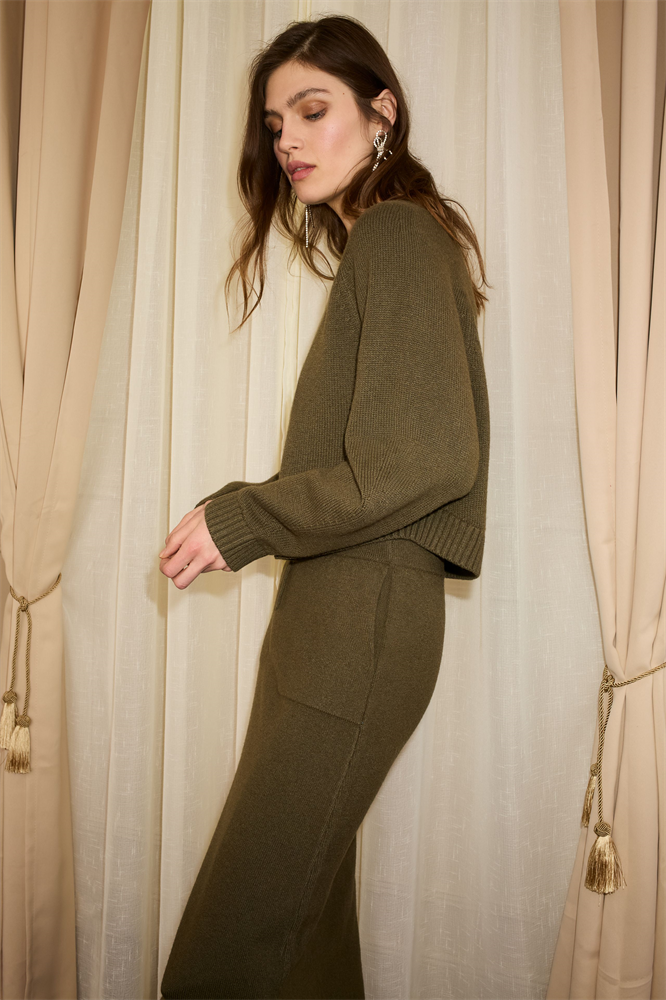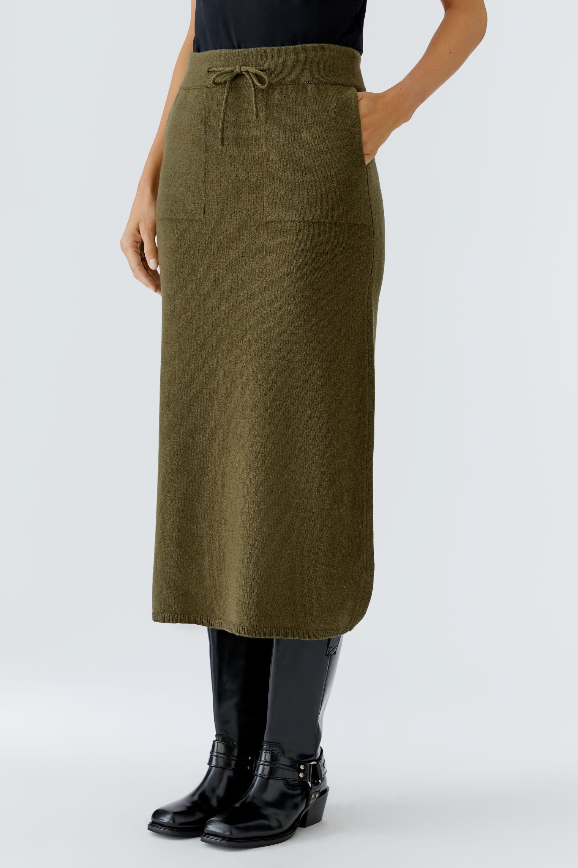Strickrock in Midi-Länge aus weicher Wollmischung - lässiger Look mit Taschen