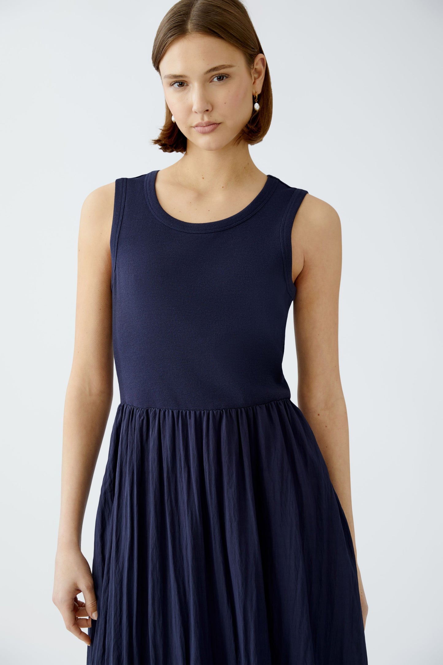 Maxikleid gepatcht - Top aus sportiver Rippe mit lässigem Volumenrock kombiniert