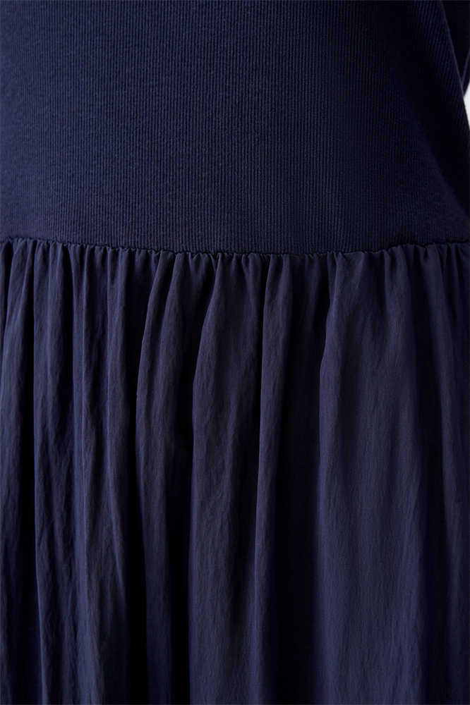 Klassische Baumwolljersey Rippe mit fließendem Rockteil aus Webstoff