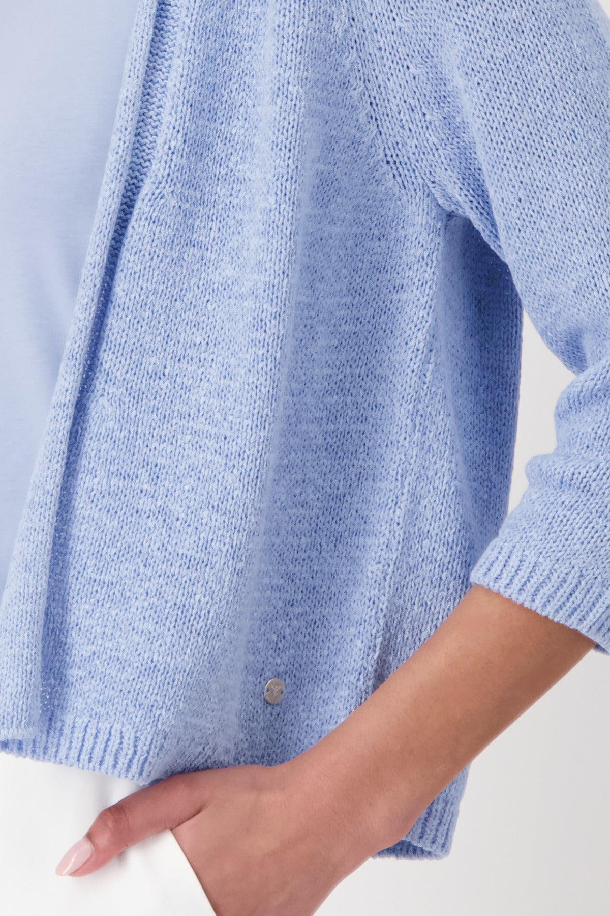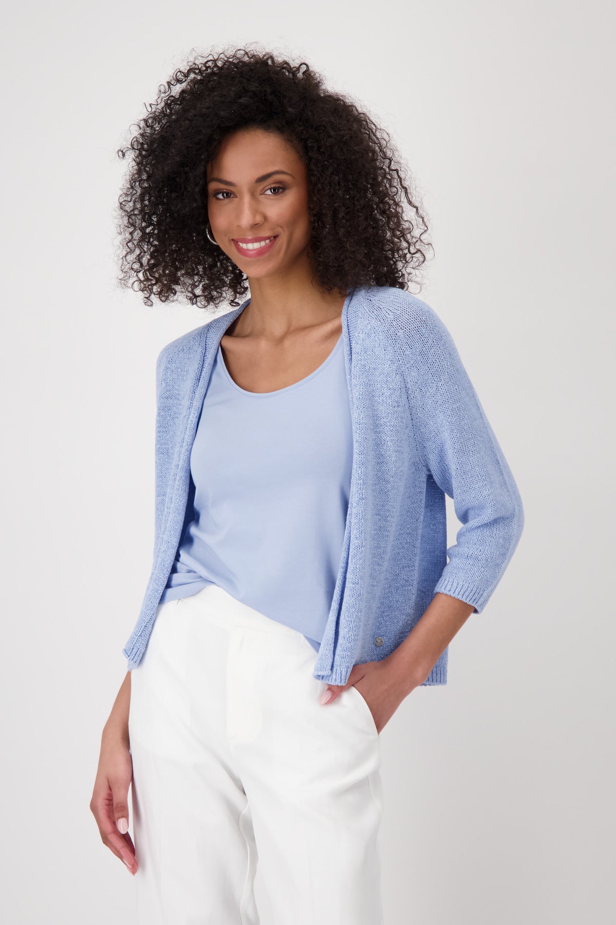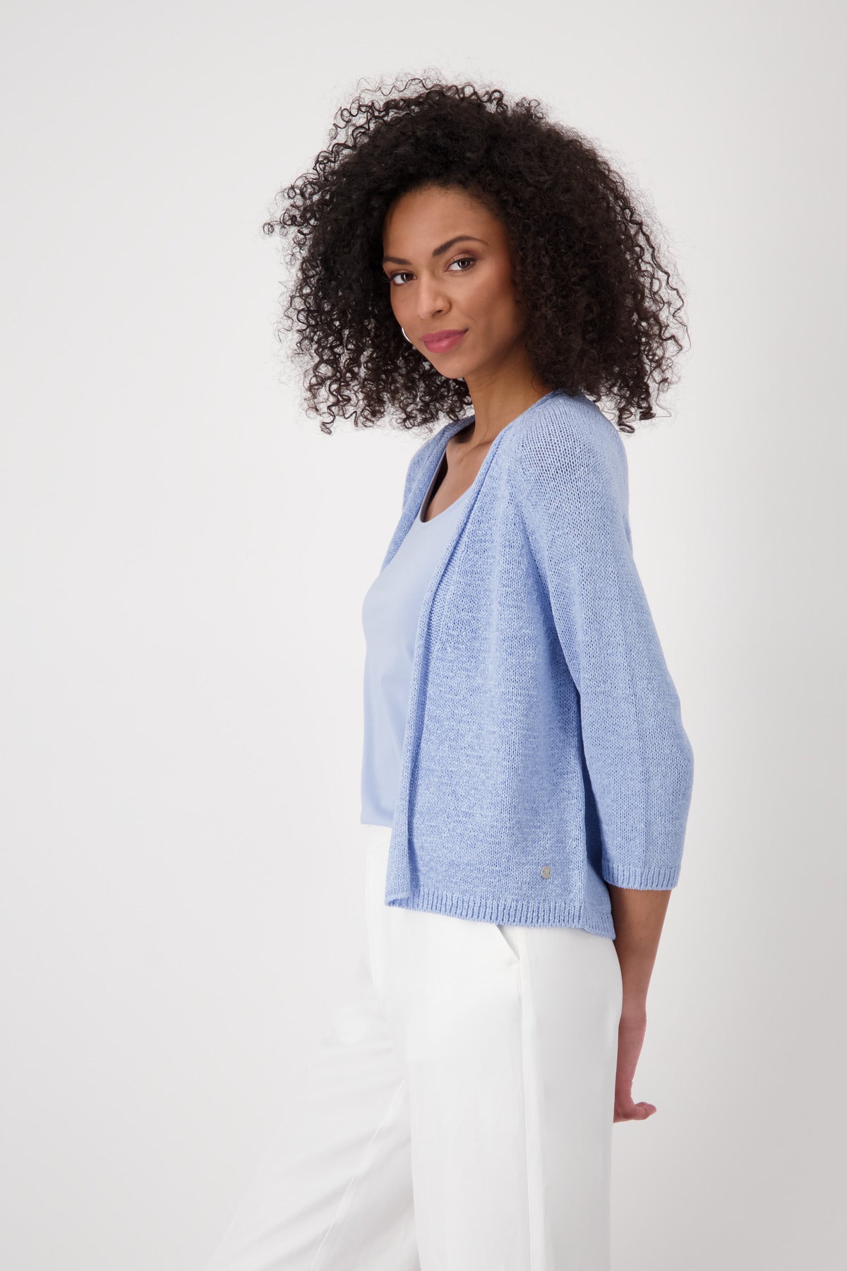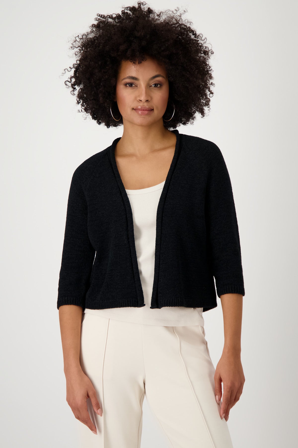 Dieser Stricküberwurf verleiht jedem Outfit eine gemütliche Note. Ohne Knöpfe und mit ¾-Raglanärmeln.