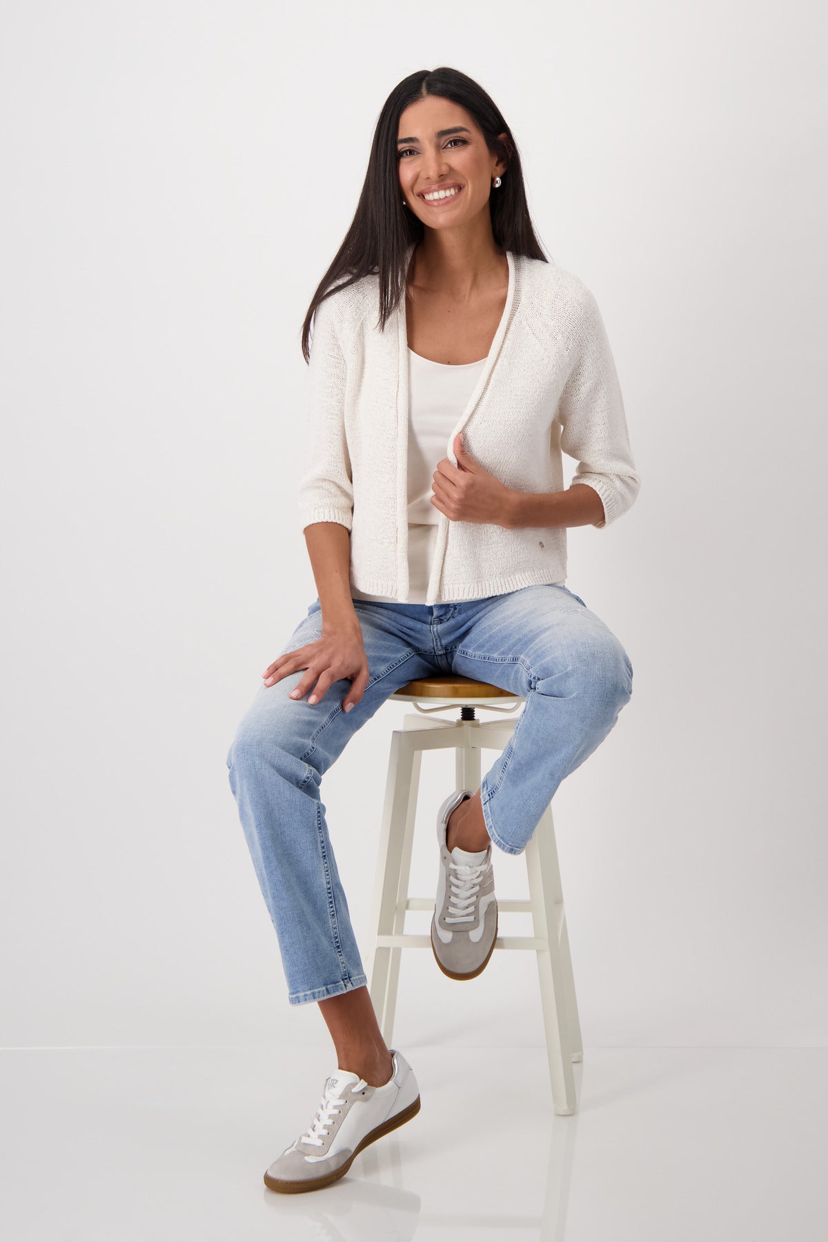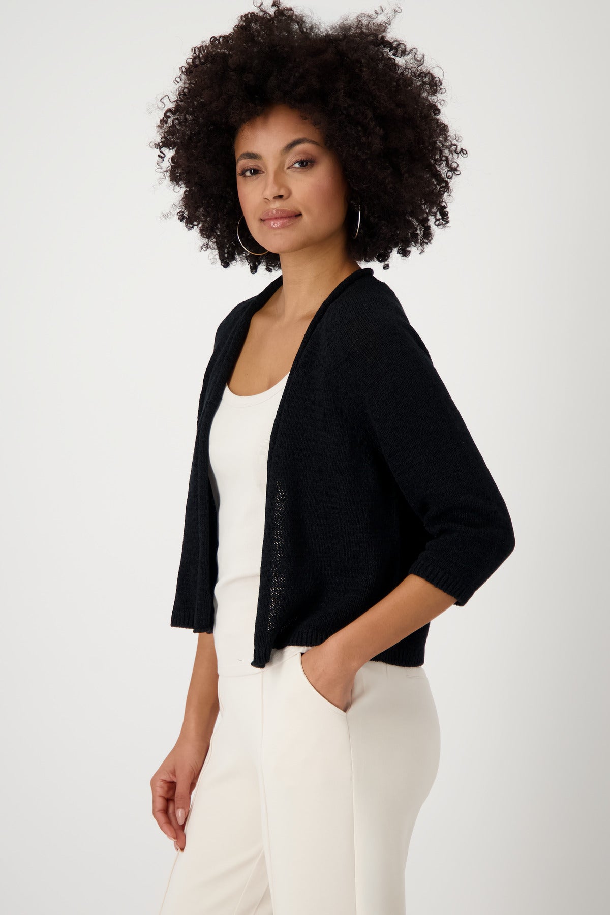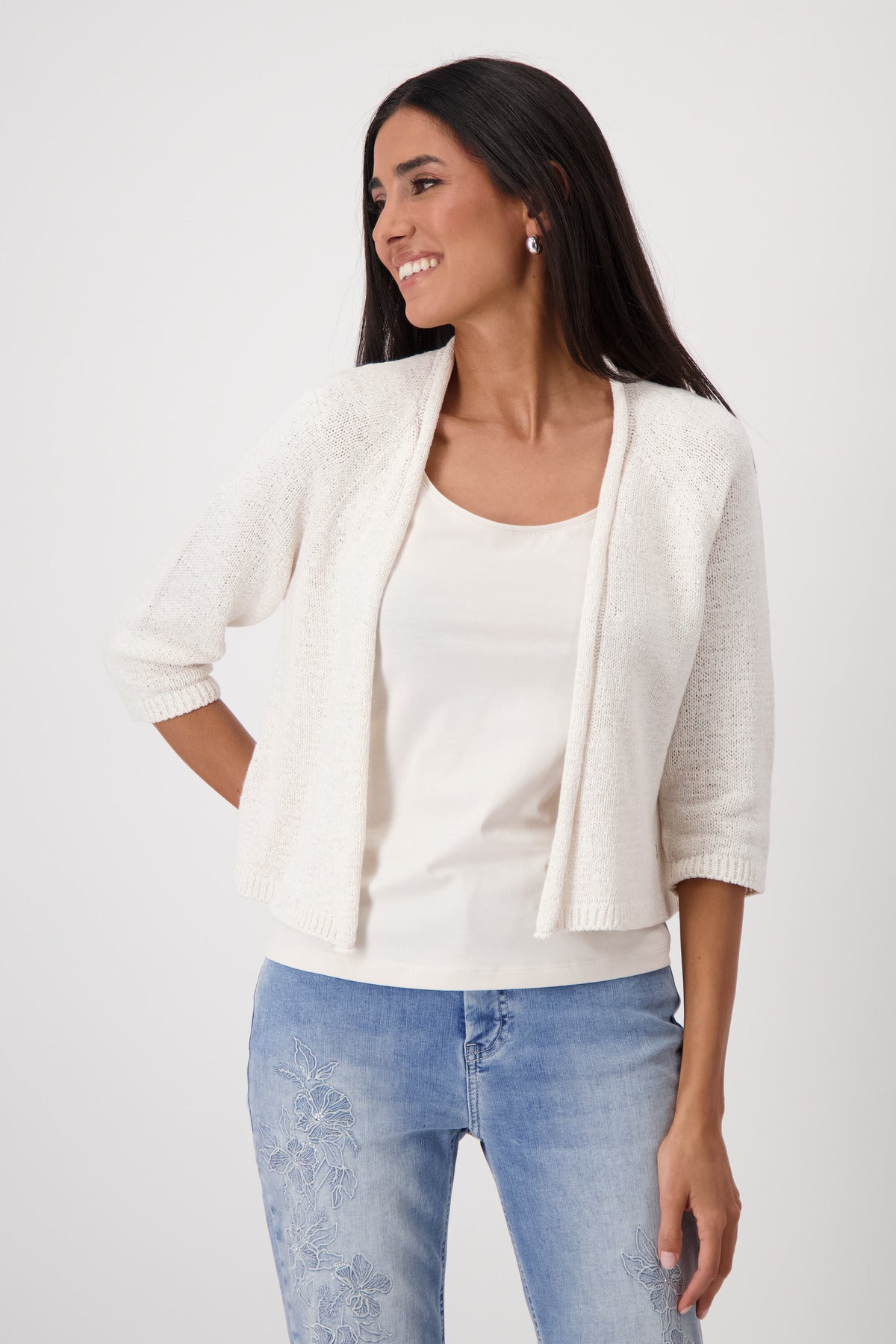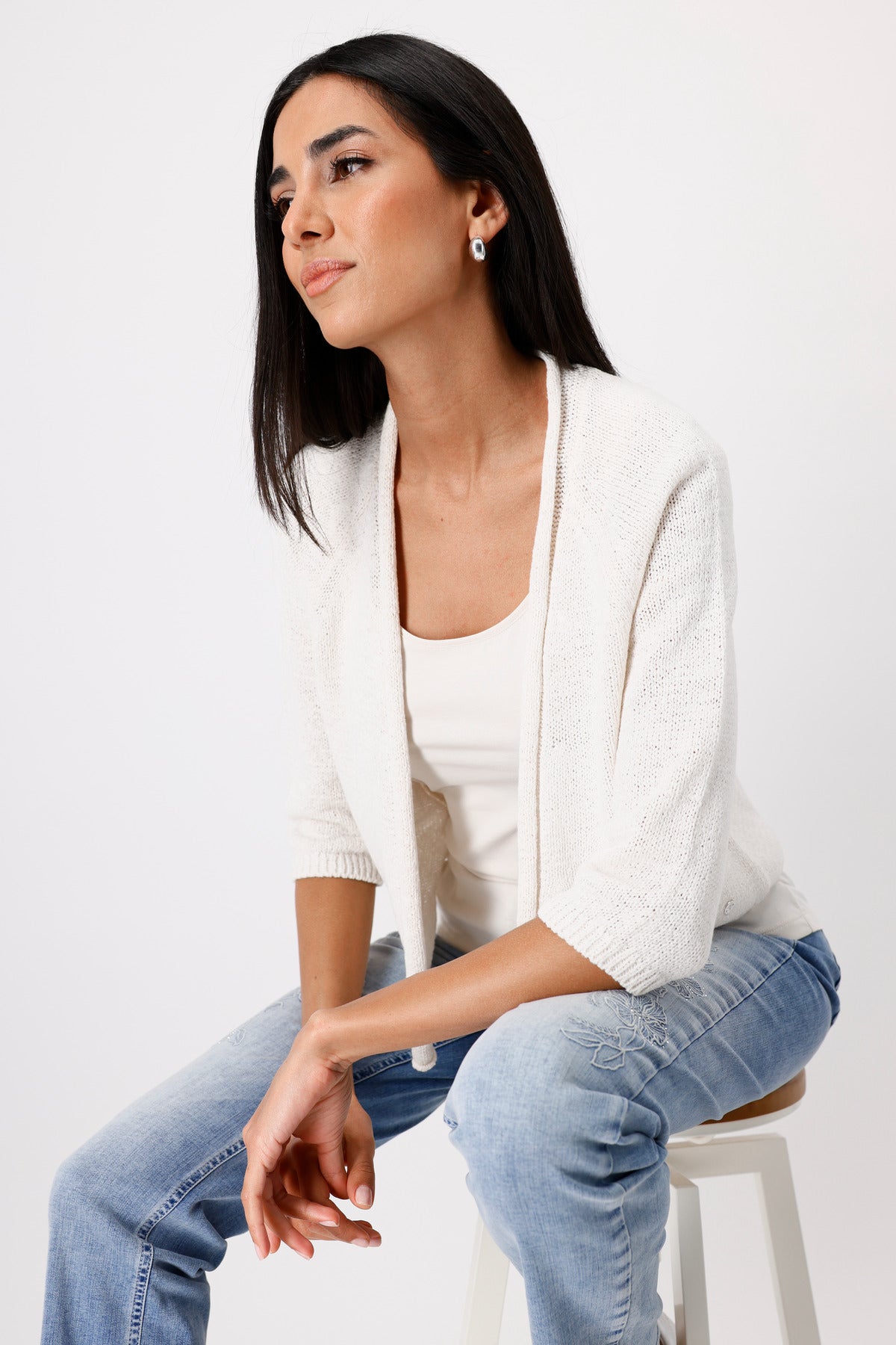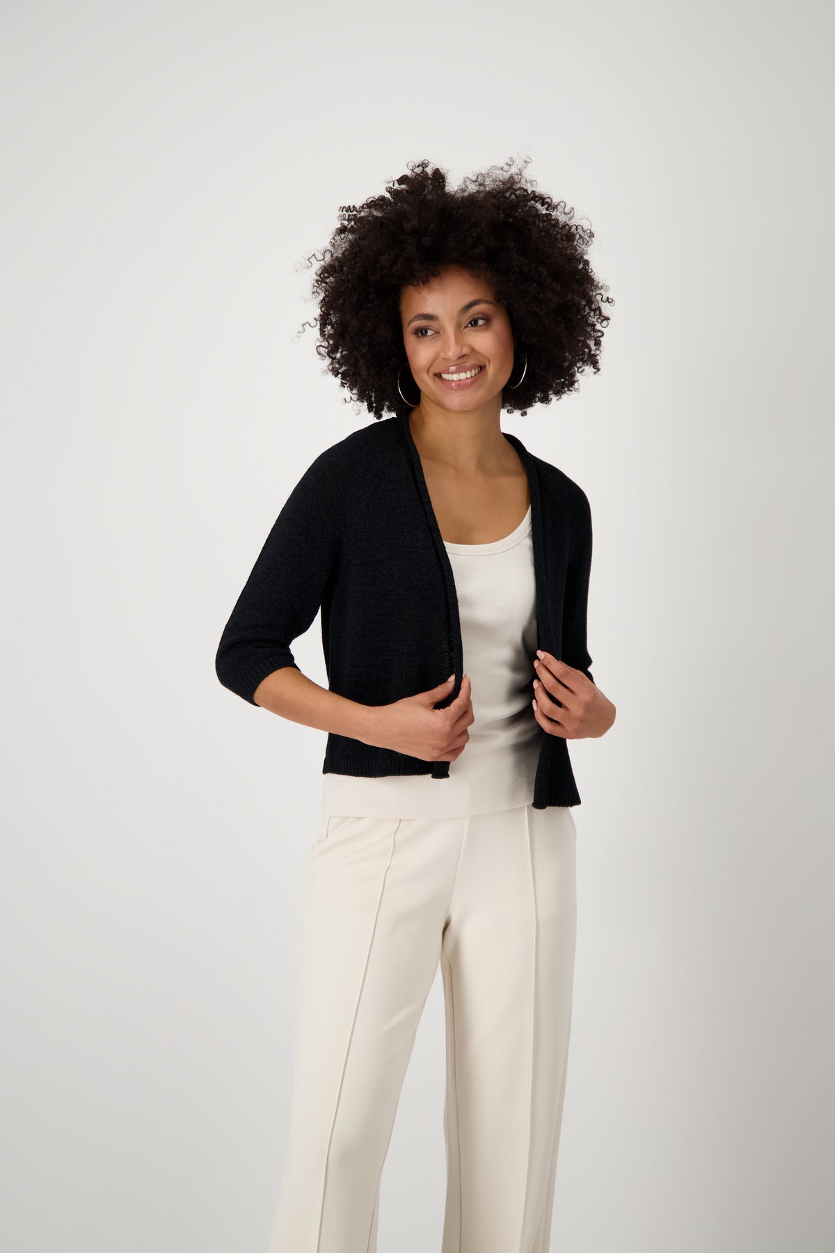 Dieser Stricküberwurf verleiht jedem Outfit eine gemütliche Note. Ohne Knöpfe und mit ¾-Raglanärmeln.