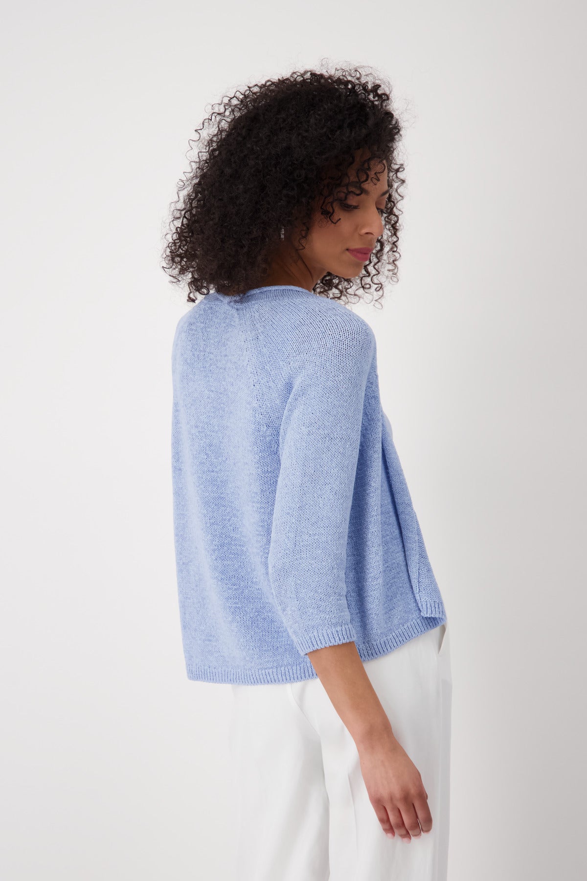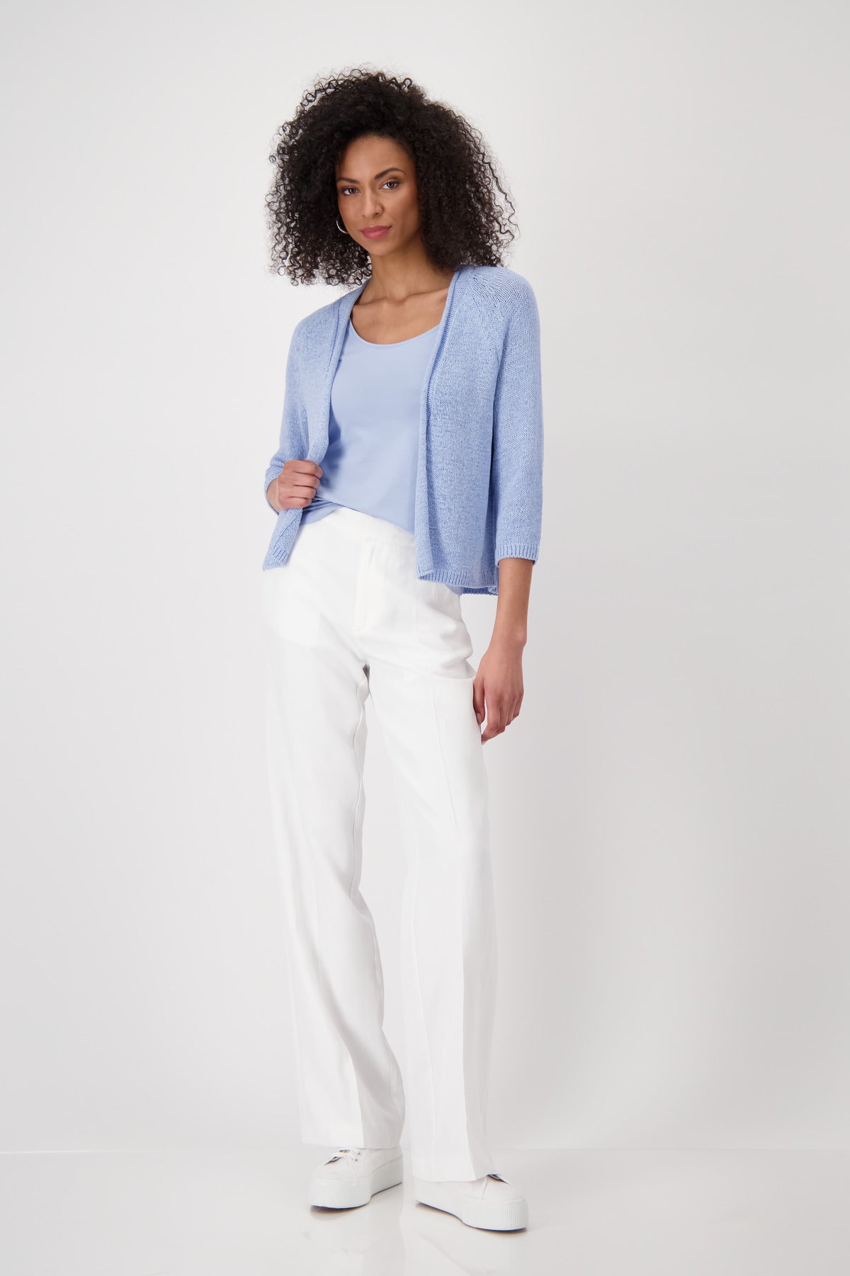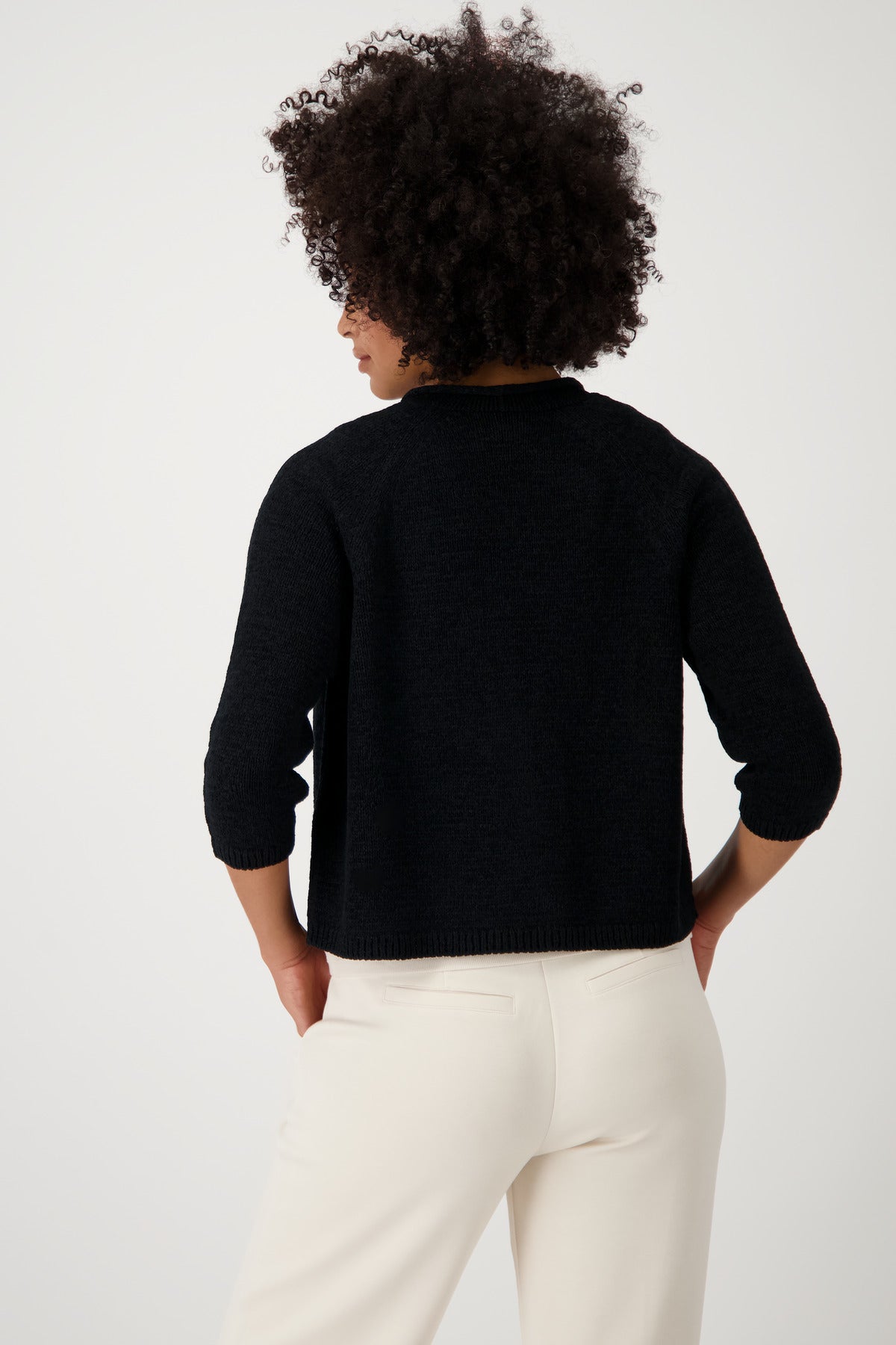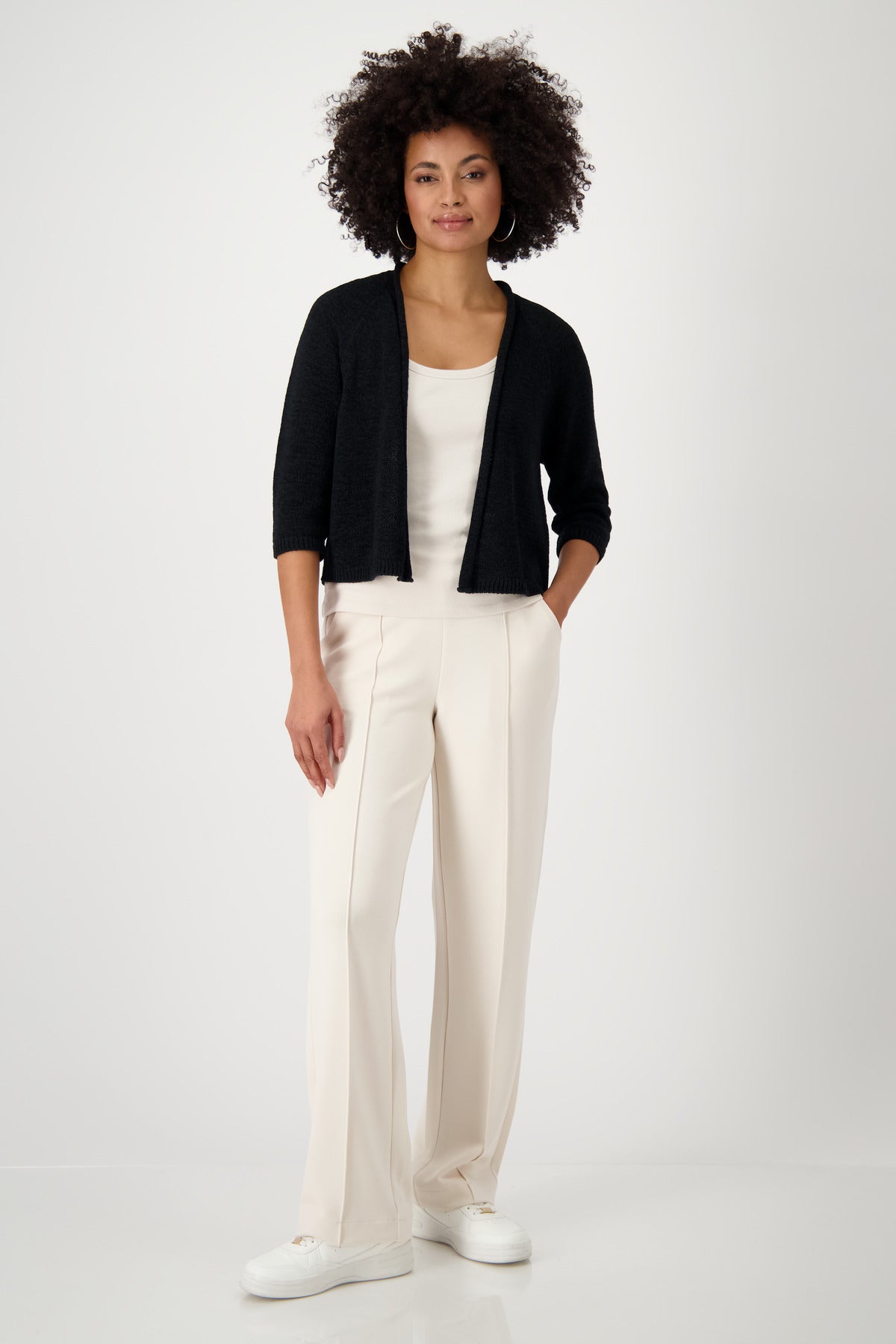 Dieser Stricküberwurf verleiht jedem Outfit eine gemütliche Note. Ohne Knöpfe und mit ¾-Raglanärmeln.