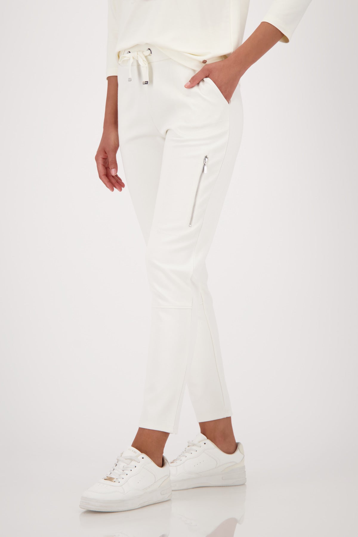 Jogger aus fließender Viskose mit elastischem Material, Rippenstruktur, einem seitlichen Reißverschluss und praktischen, aufgesetzten Seitentaschen für stylischen Komfort.