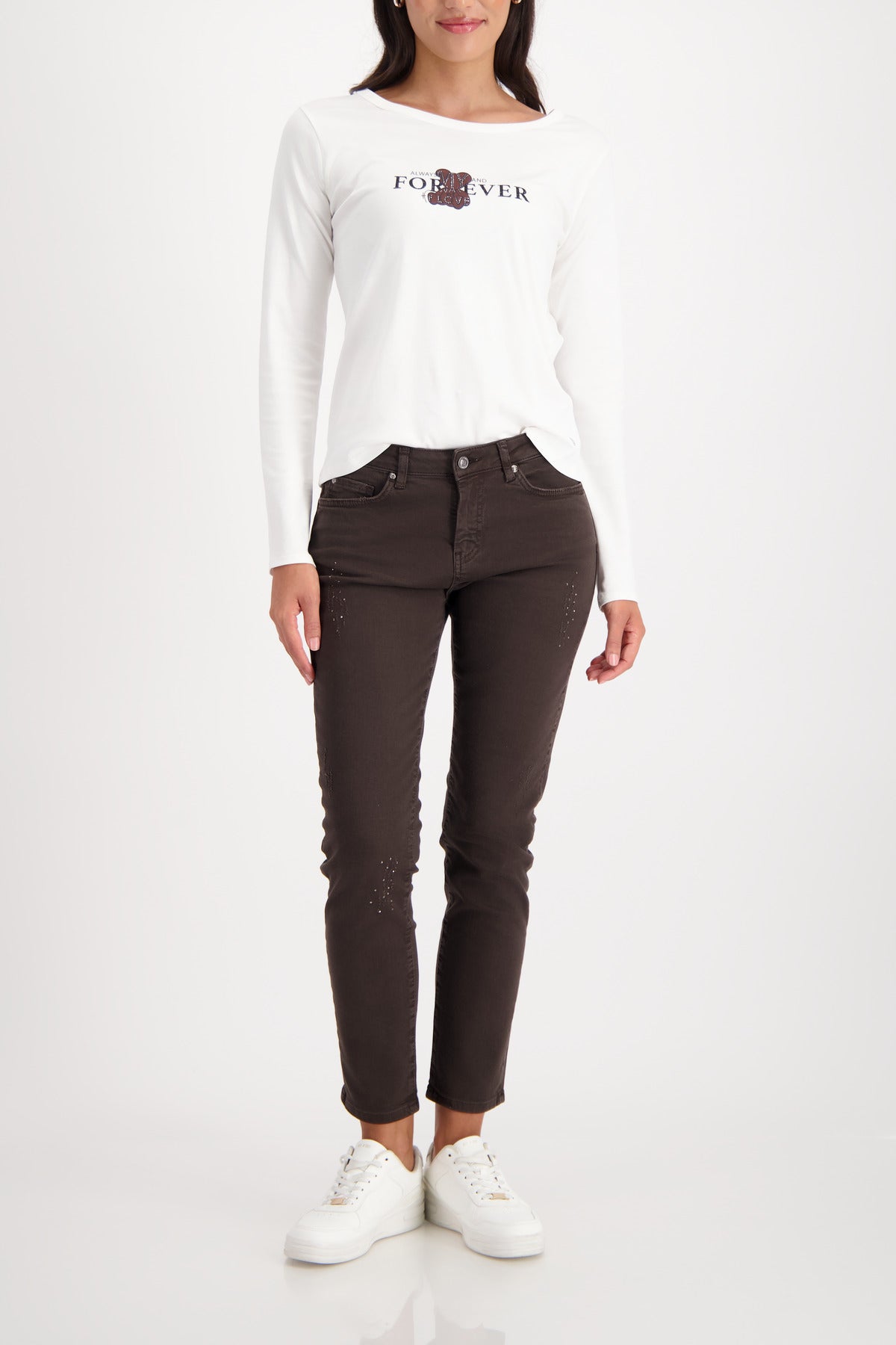 Verleihe deinem Look Charakter mit diesen Distressed Jeans aus hochwertiger Baumwolle, geschmückt mit Strasssteinen und praktischen Taschen.