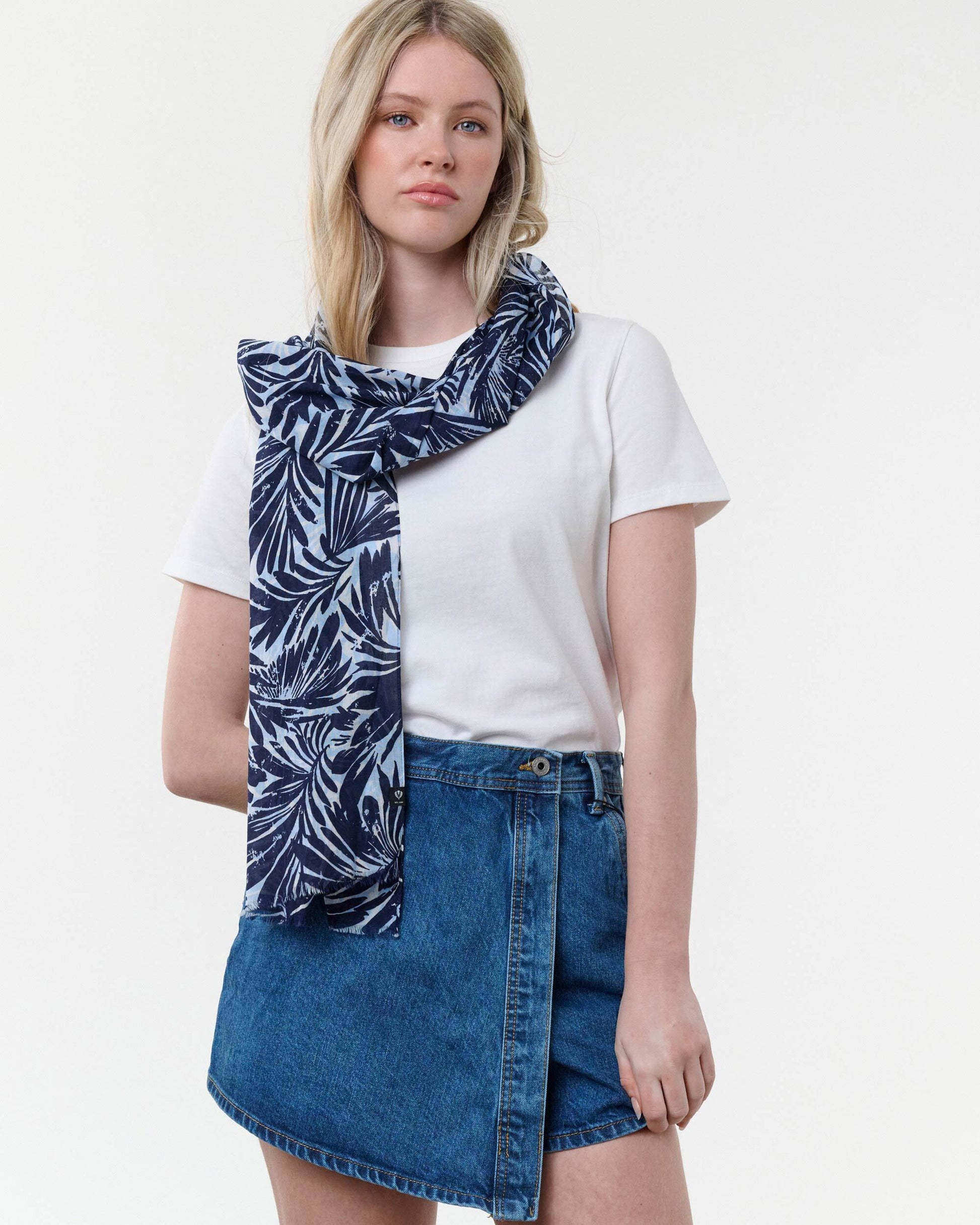 Der FRAAS Schal aus 100% Baumwolle bringt mit seinem tropischen Palmenblatt-Print sofort Sommergefühle in jedes Outfit. Leicht, weich und atmungsaktiv ist er ideal für warme Tage. Das Format (50 x 180 cm) bietet vielseitige Tragemöglichkeiten – ob lässig um den Hals, als Schultertuch oder Strand-Accessoire. Perfekt für Urlaub, Stadtbummel und sommerliche Looks.