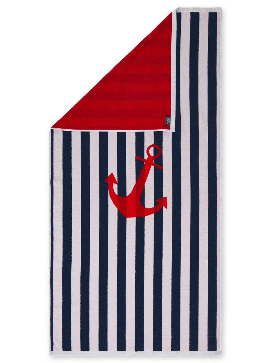 Das trendige Velourstrandtuch sorgt im Marinedesign für sommerliche Laune und ein kuschelig weiches Liegegefühl. Die saugfähige Baumwolle garantiert ein angenehmes Gefühl nach dem kühlen Nass.Made in Austria.