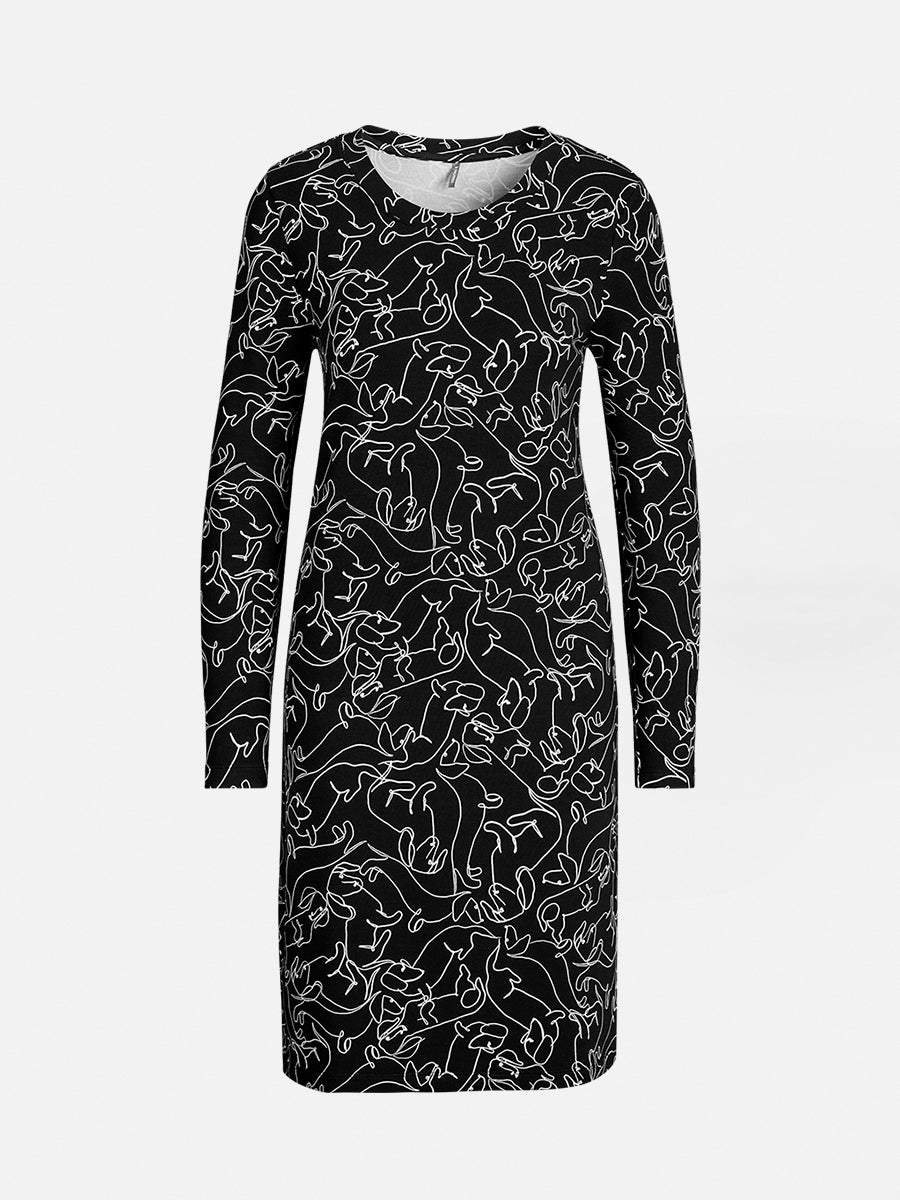 Kuschelige Nächte garantiert das Nachthemd der Sleepy Dog Serie. Hergestellt aus angenehm weichem Viskose French Terry und geschmückt mit niedlichen Dackel-Drucken, bietet dieses schwarz-weiße Nachthemd nicht nur ultimativen Komfort, sondern auch einen bezaubernden Look. Ideal für gemütliche Stunden zu Hause, lässt es Sie stilvoll und behaglich schlafen.