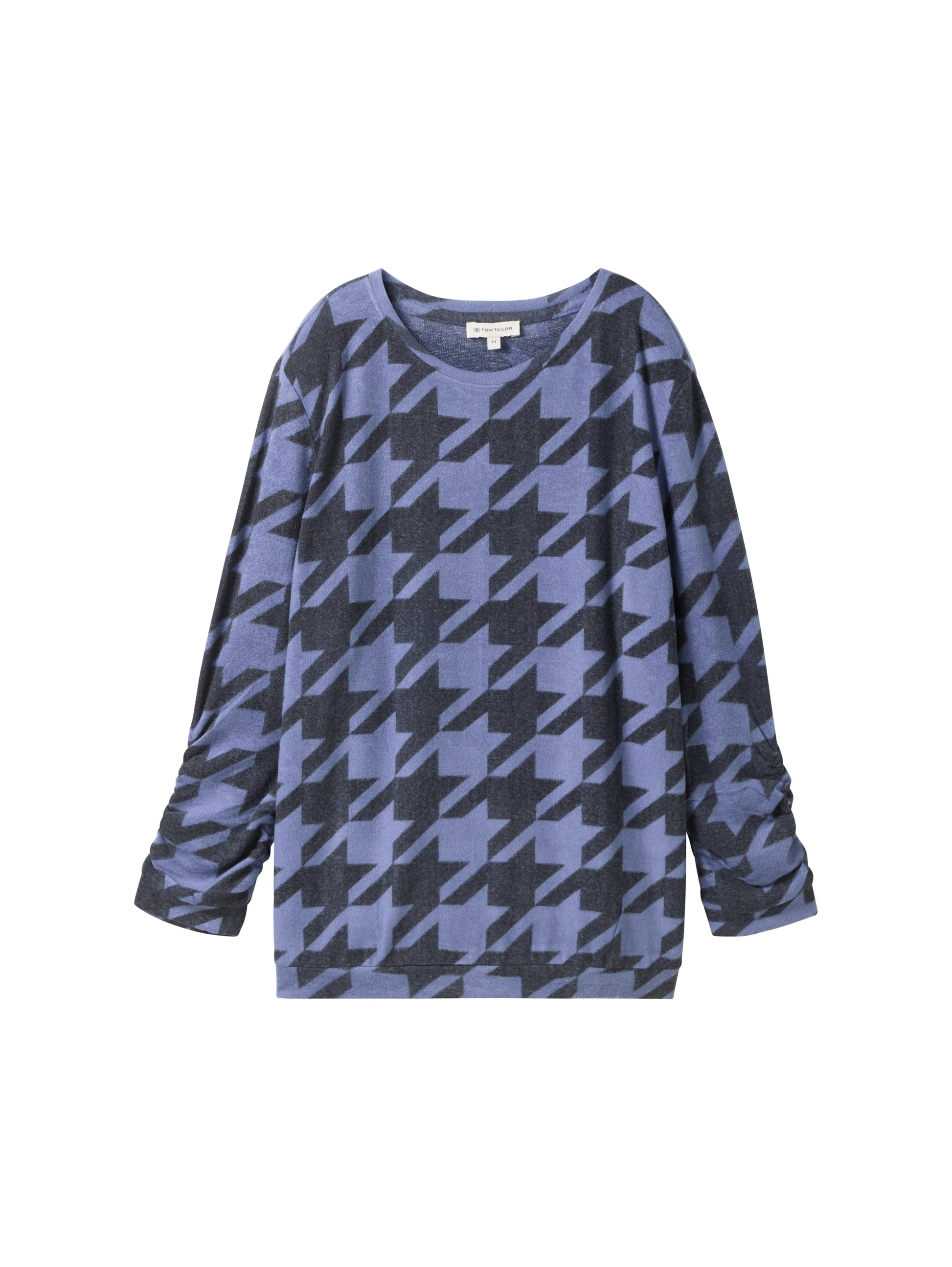 * gemustert * mit Raffung an den Ärmeln * 3/4 Arm mit Rundhalsausschnitt * mit fließender Viskose