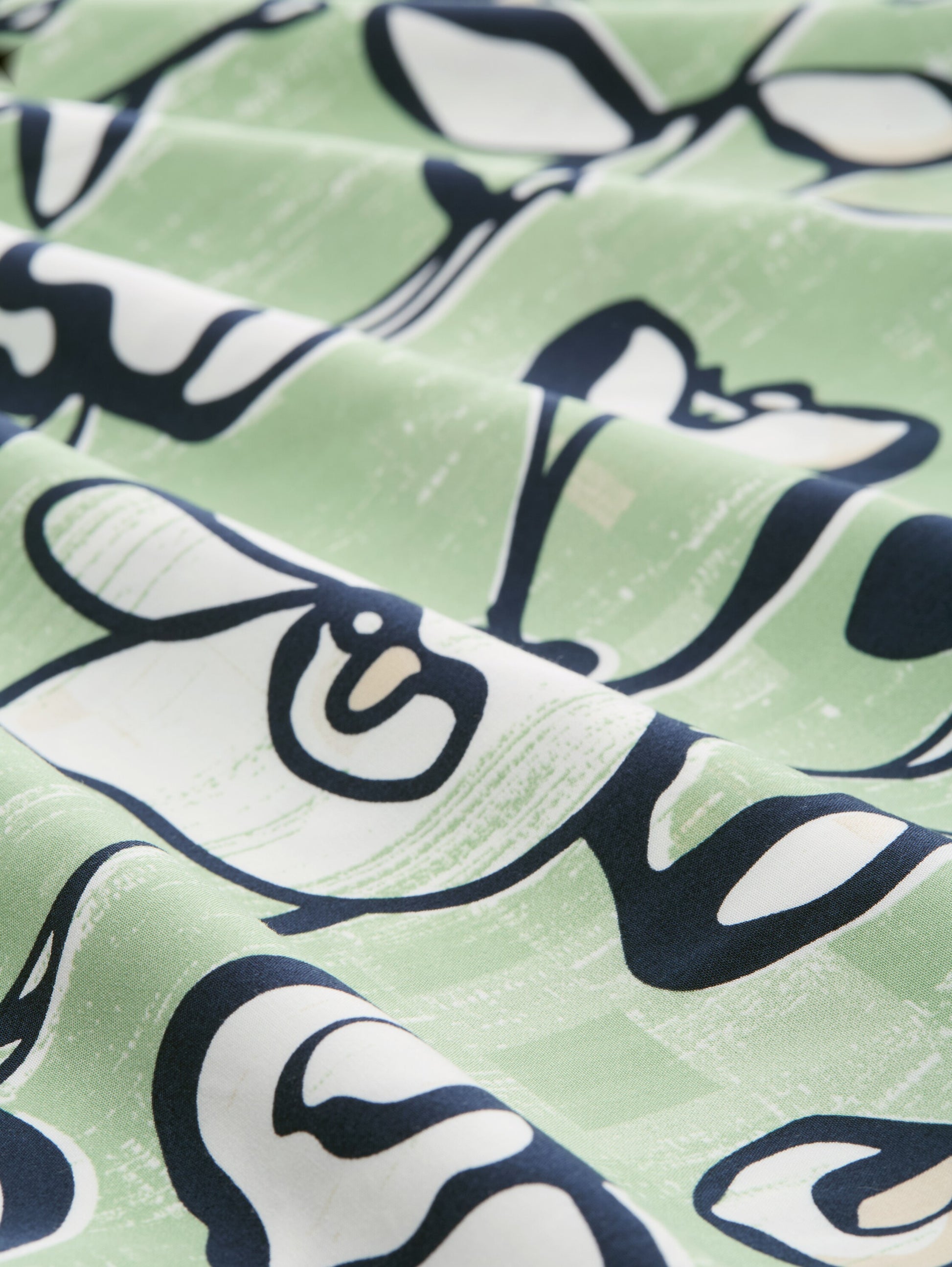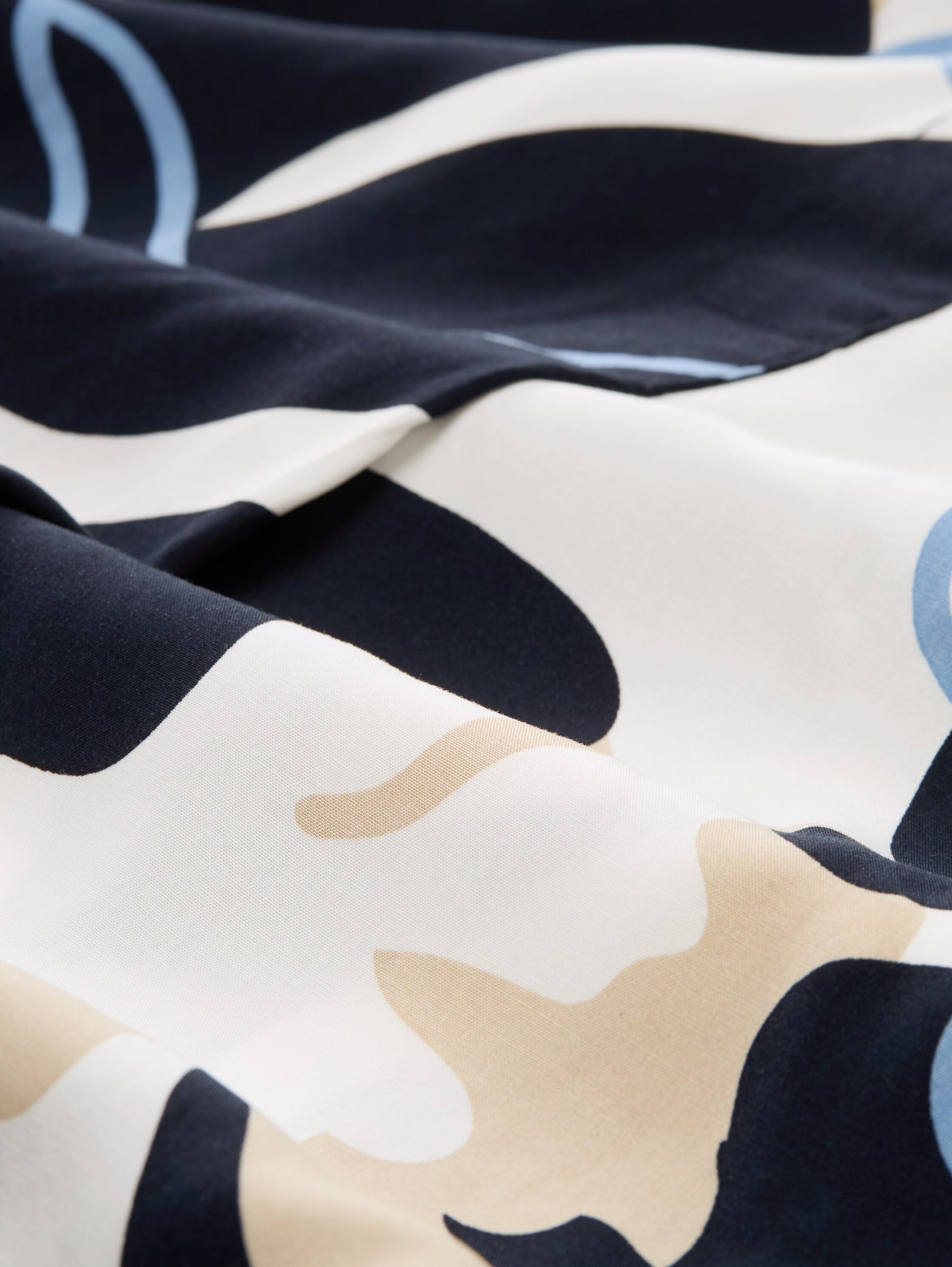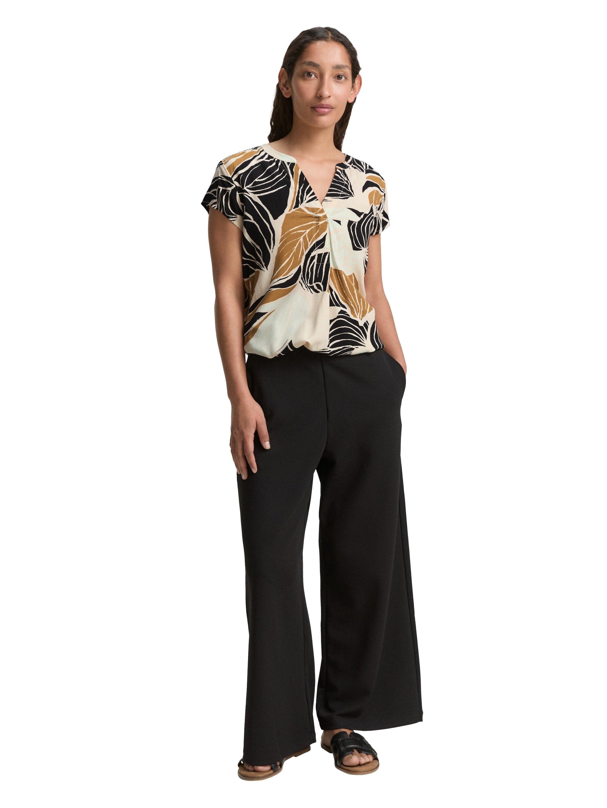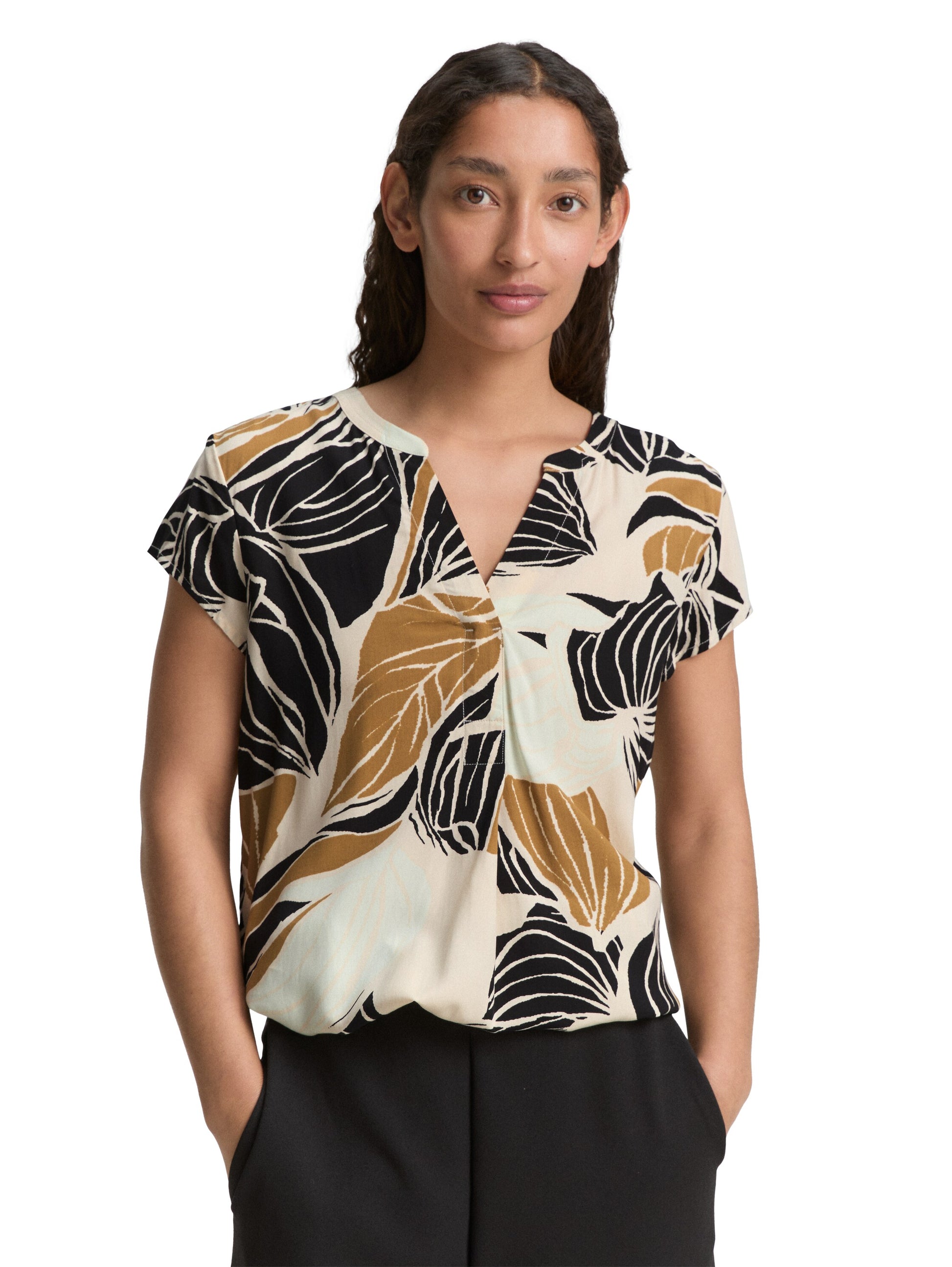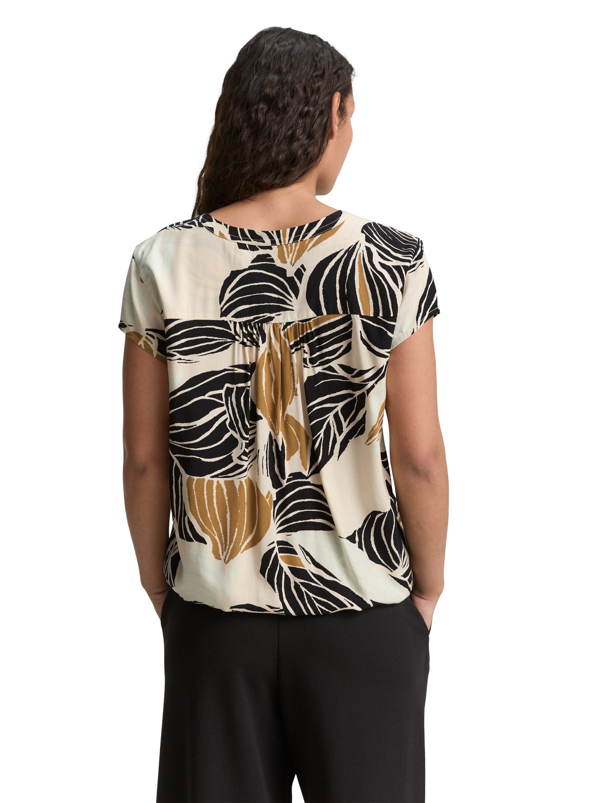 * Gemusterte, kurzärmlige Bluse aus Viskose mit Faltendetail auf der Vorderseite und leichten Raffungen auf der Rückseite. Mit elastischem Gummibund am Saum.