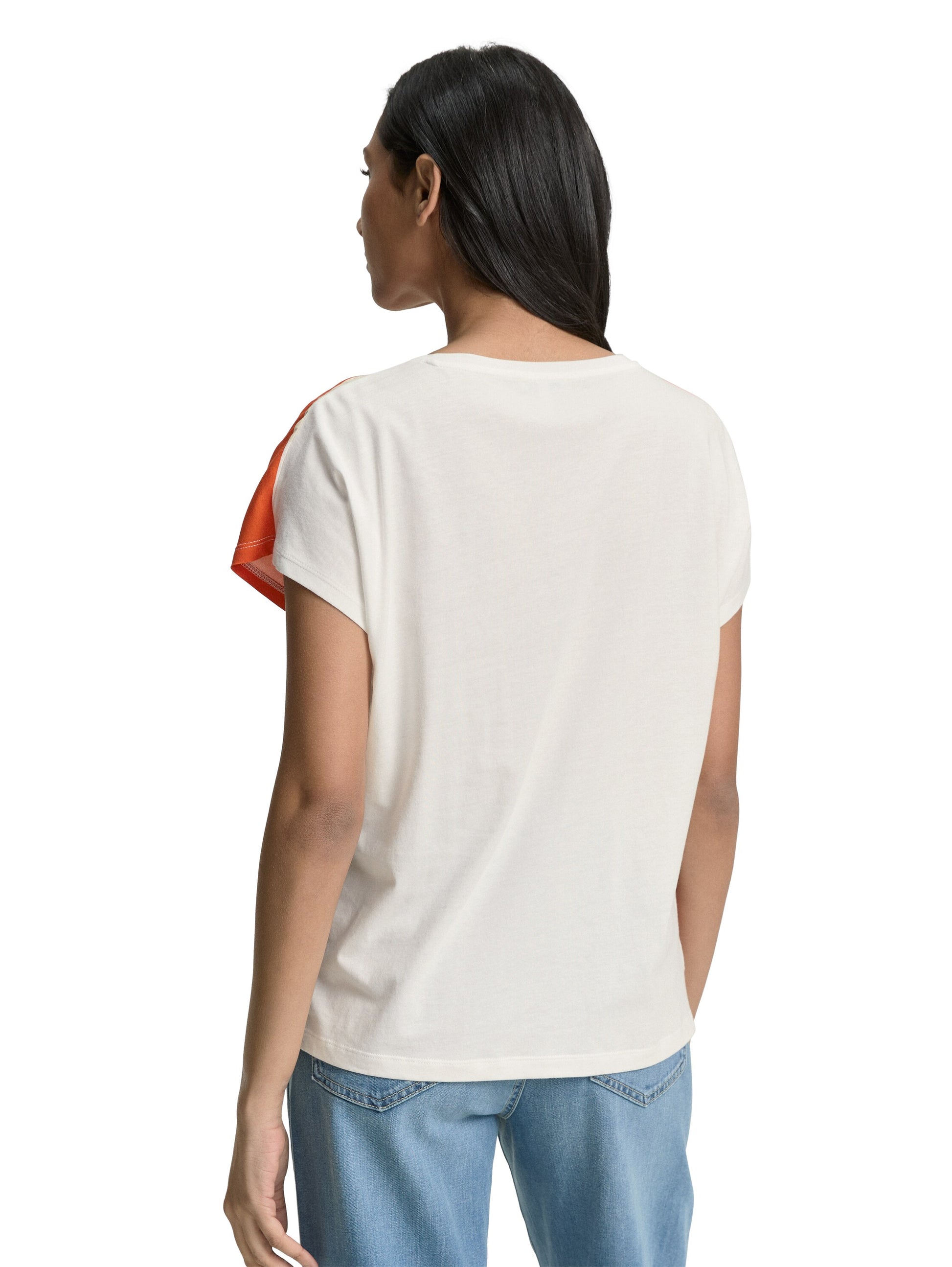 * T-Shirt im Material-Mix mit Print auf der Vorderseite und kleinen Seitenschlitzen