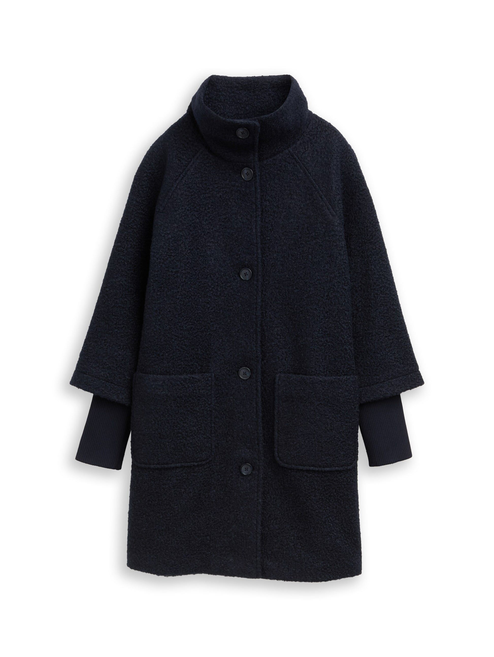 * Strukturierter Mantel aus Bouclé mit aufgesetzten Taschen vorne und Schlitz hinten am Saum für mehr Bewegungsfreiheit. Rippbündchen an den Armabschlüssen schützen vor Wind und Kälte. * Regular Fit - gerader Schnitt * Brustweite bei Größe M ca. 56 cm | Rückenlänge bei Größe M ca. 94 cm