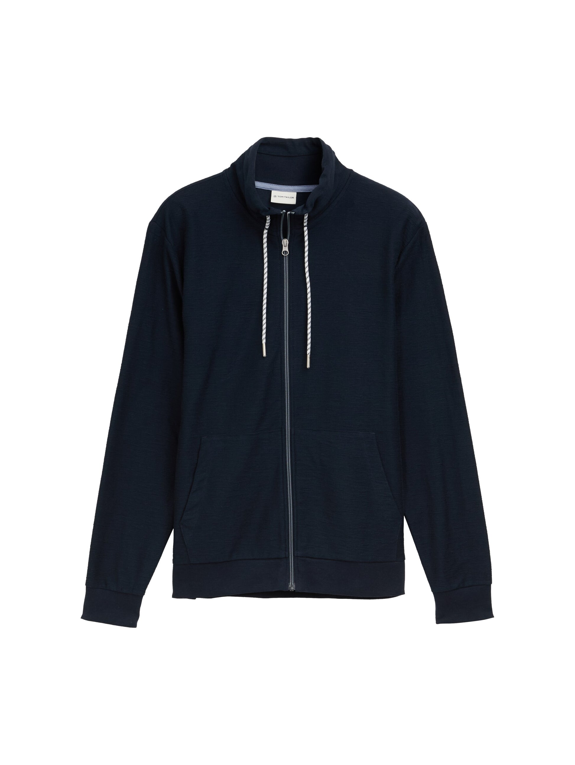 * Leichte Shirtjacke mit seitlichen Eingriffstaschen und Kordelzug am Stehkragen. Aus einem strukturierten Jersey-Stoff.