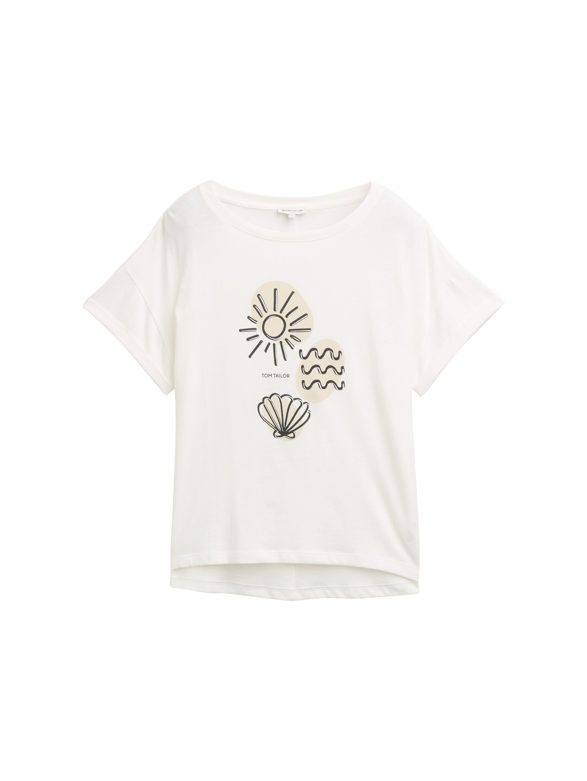 * T-Shirt mit sommerlichem Meeresmotiv als Print auf der Vorderseite. Mit fixiertem Ärmelaufschlag und High-Low-Saum. Aus einem Single-Jersey-Stoff aus Baumwolle.