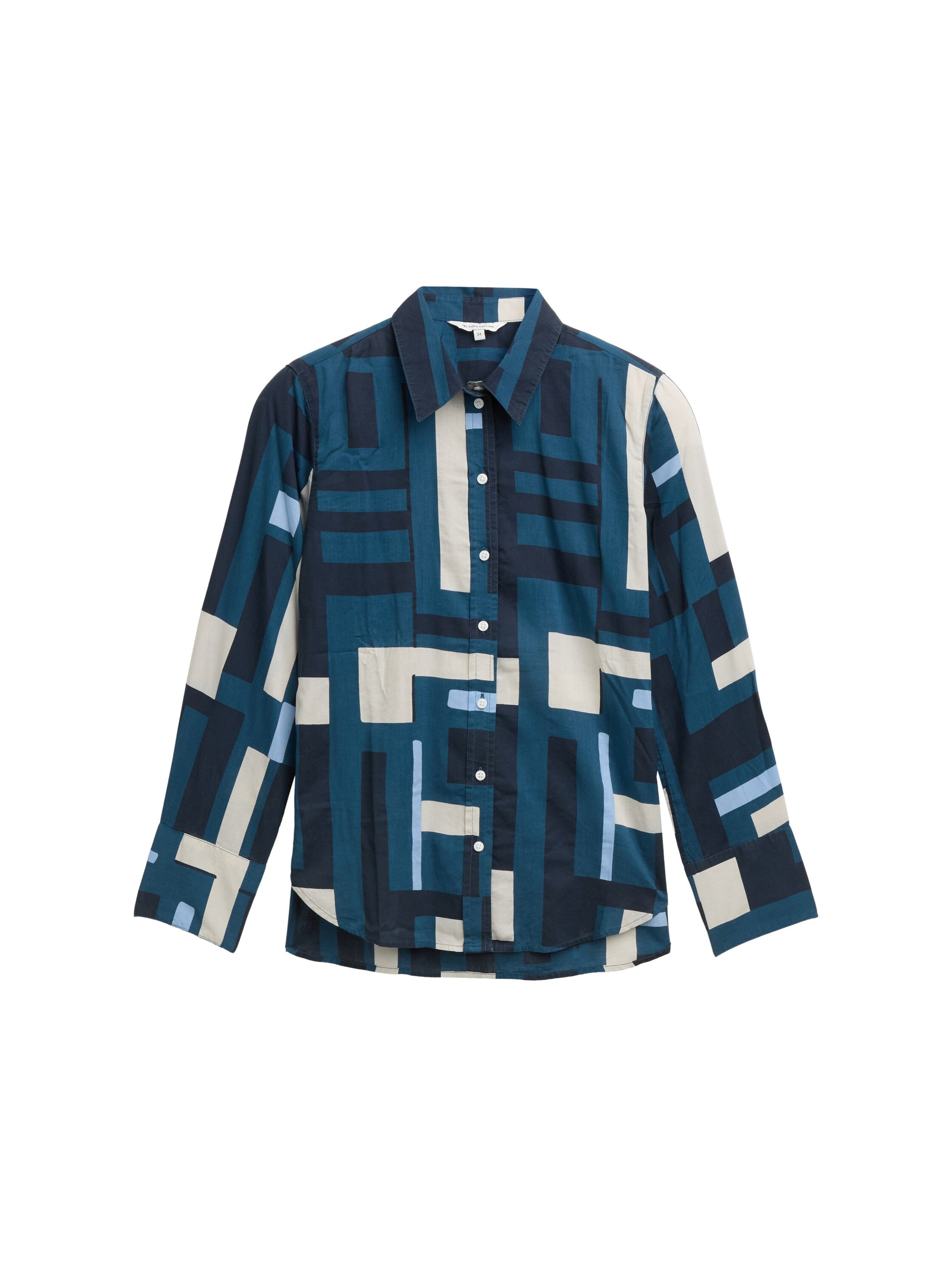 * Gemusterte Hemdbluse mit Seitenschlitzen und Faltendetail auf der Rückseite