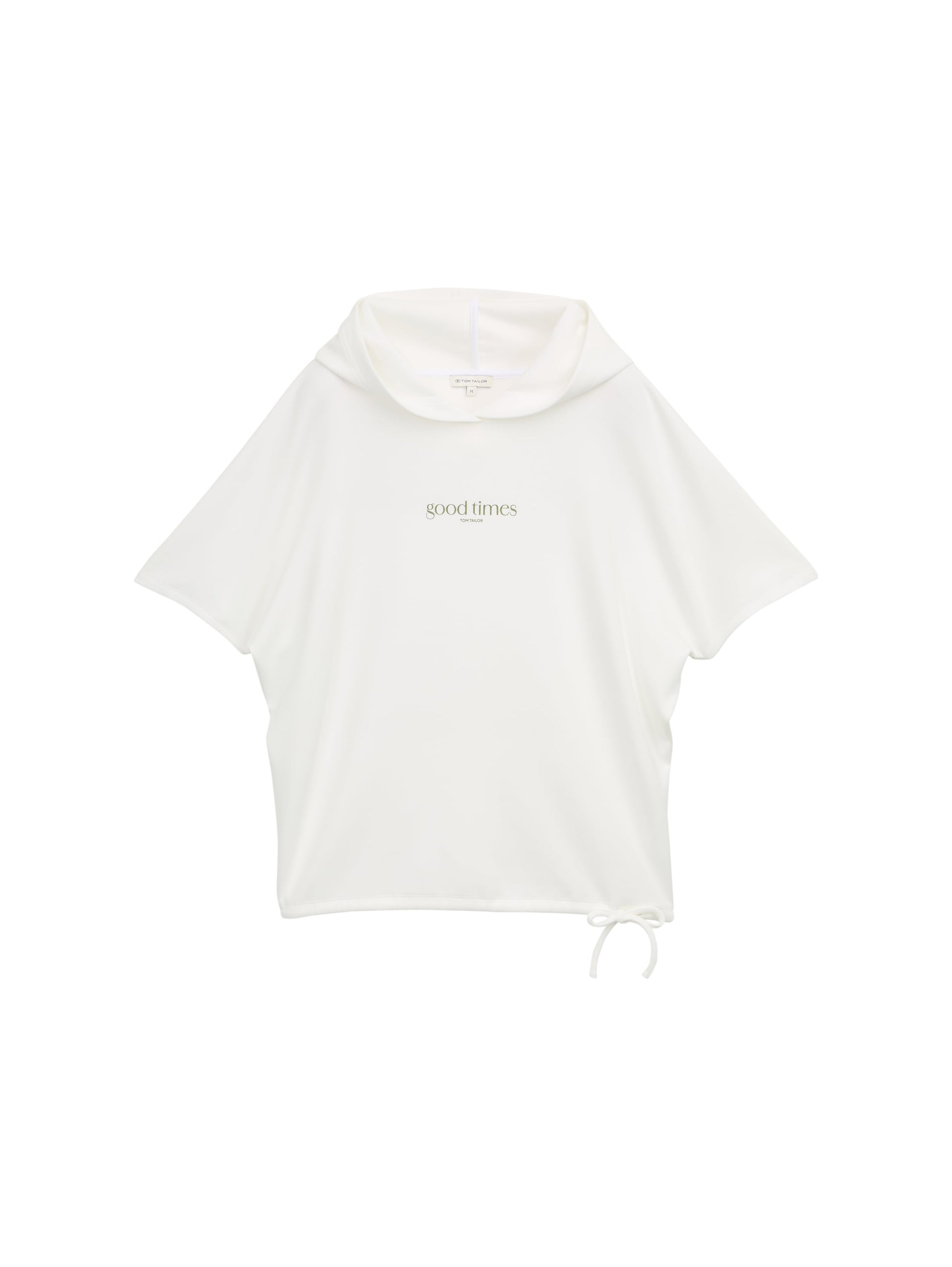 * T-Shirt mit Kapuze, Schriftzug auf der Brust und Kordelzug am Saum. Aus einem knitterarmen, elastischen und neoprenähnlichen Scuba-Stoff.